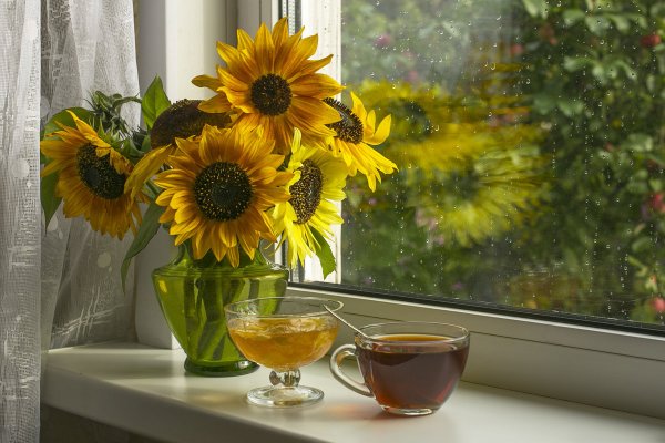 ![Подсолнухи на окне]()