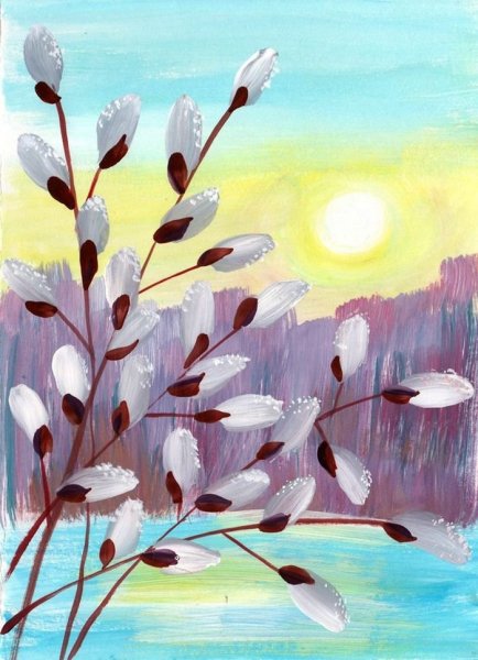 "Веточка вербы ." Рисование вербы.