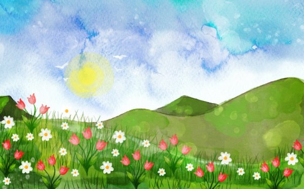 Поляна с цветами рисунок