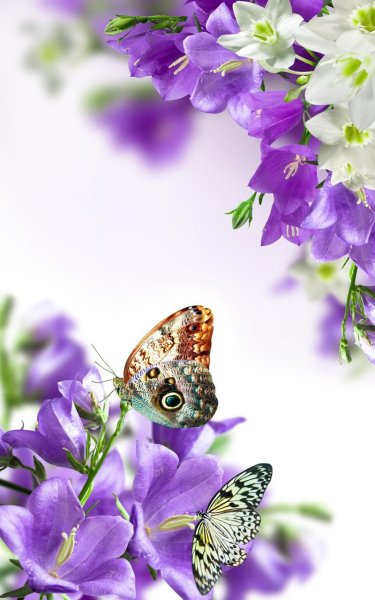 Яркие цветы и бабочки