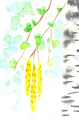 Береза акварелью для детей