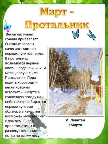 Весенние месяцы картинки для детского сада