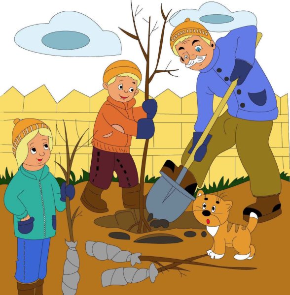 ![Весенние работы в саду для детей]()