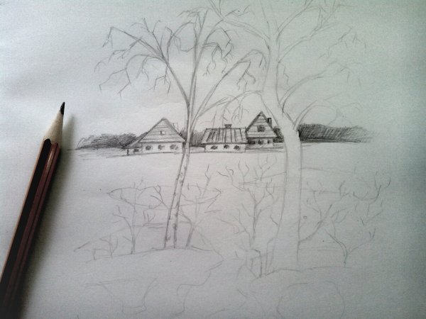 ![Этюд зимний пейзаж акварелью Андрей Крутов]()