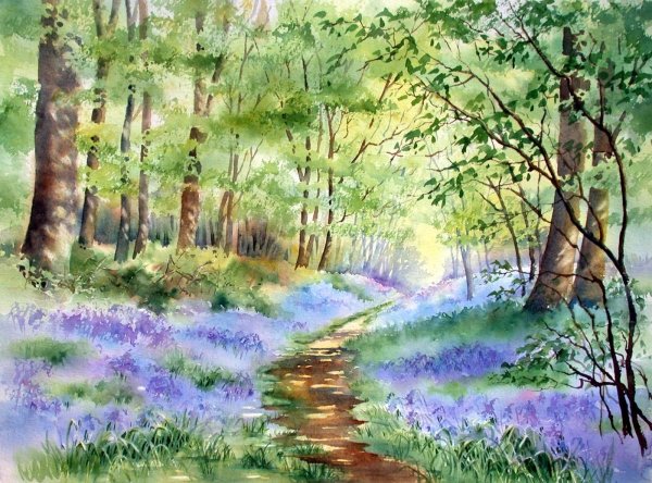 ![Весенний пейзаж акварелью]()