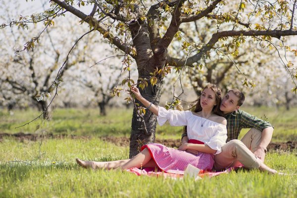 ![Влюбленные в яблоневом саду]()