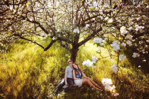 ![Пара в яблоневом саду]()