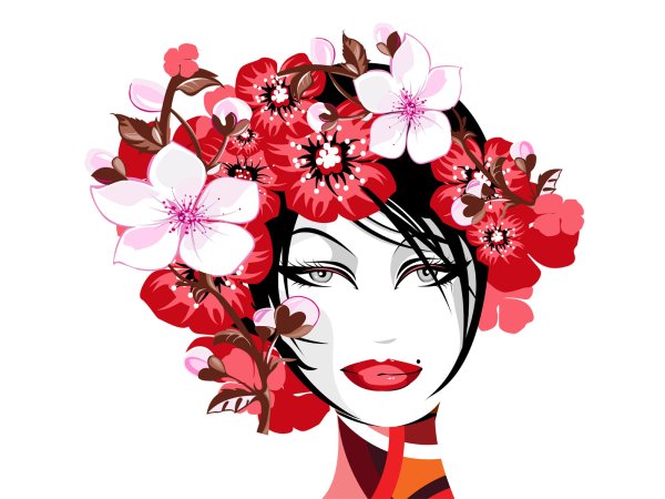 ![Девушка с цветами в волосах арт]()