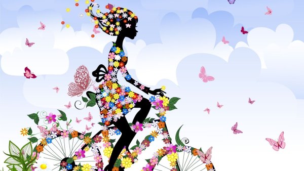 ![Нарисованная девушка в цветах]()