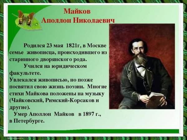 Аполлон Майков 3 класс литературное