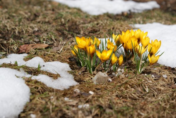 ![Цветы первоцветы желтые крокусы]()