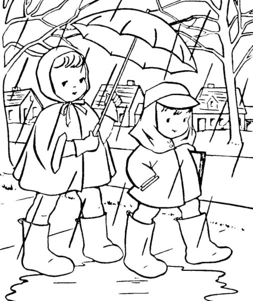 Раскраска дети весной