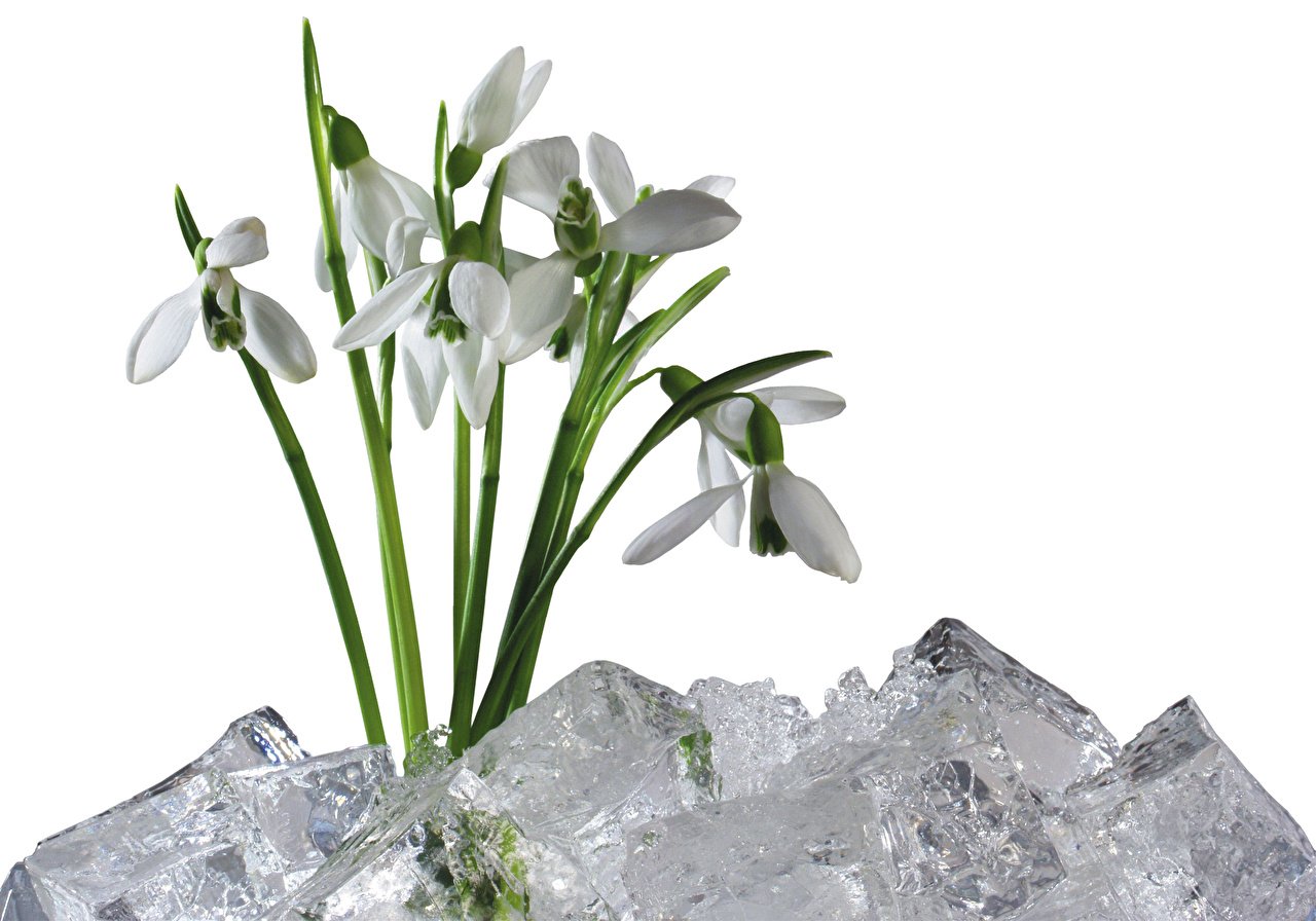 Подснежники на белом фоне