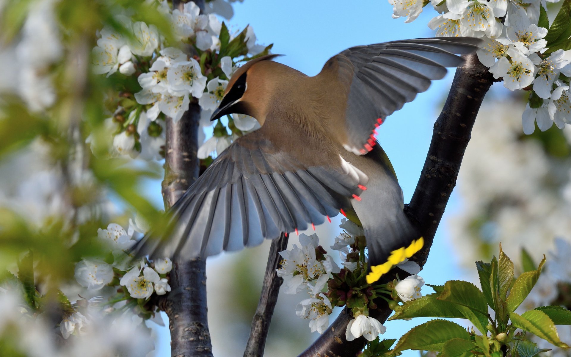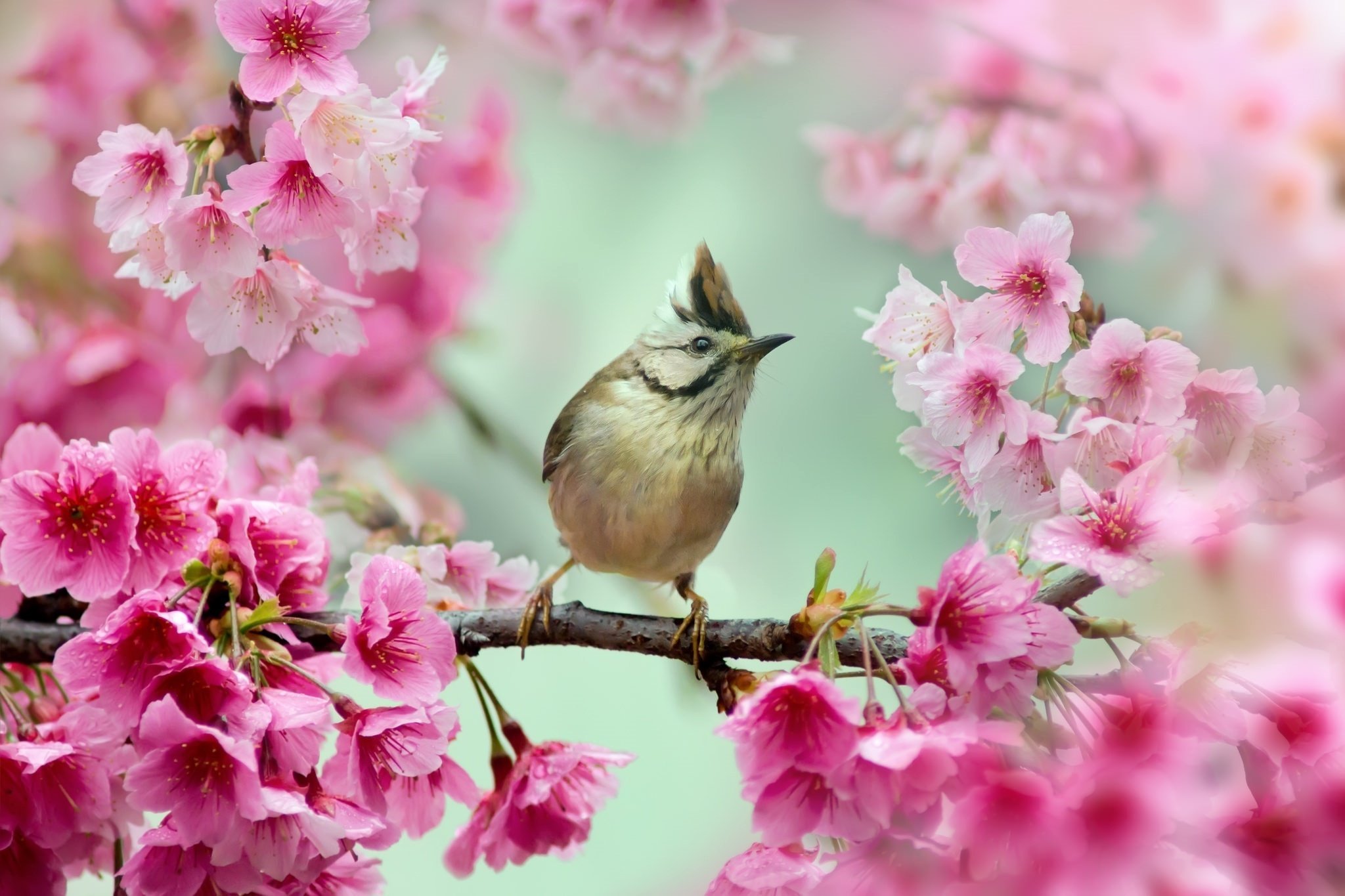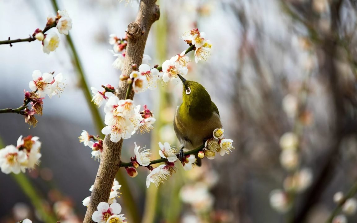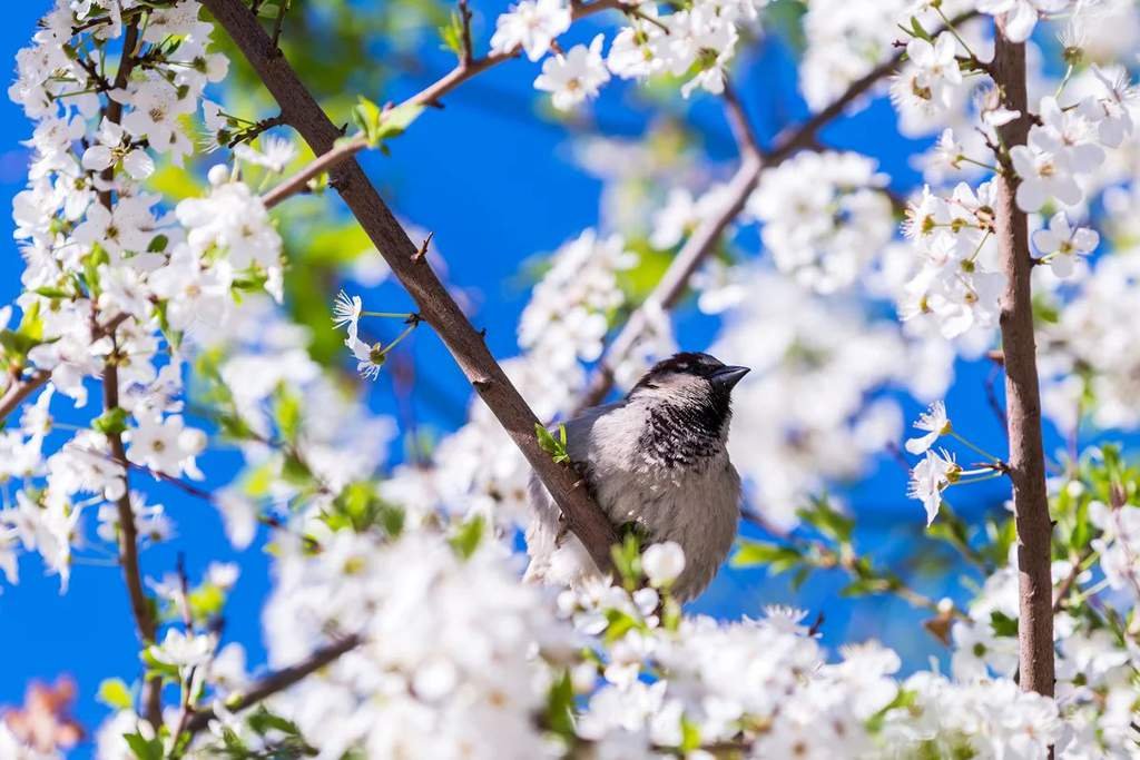 Птица на цветущей ветке
