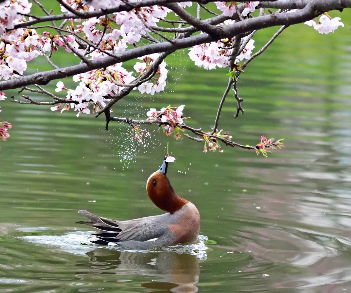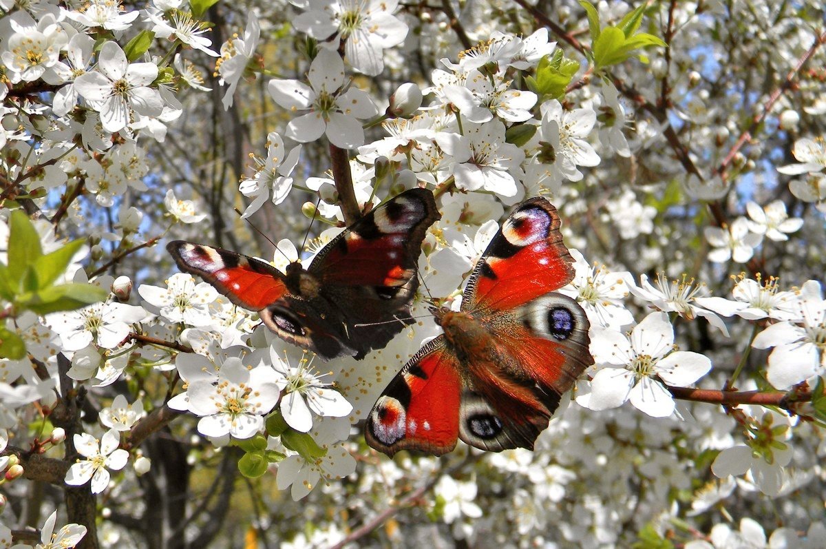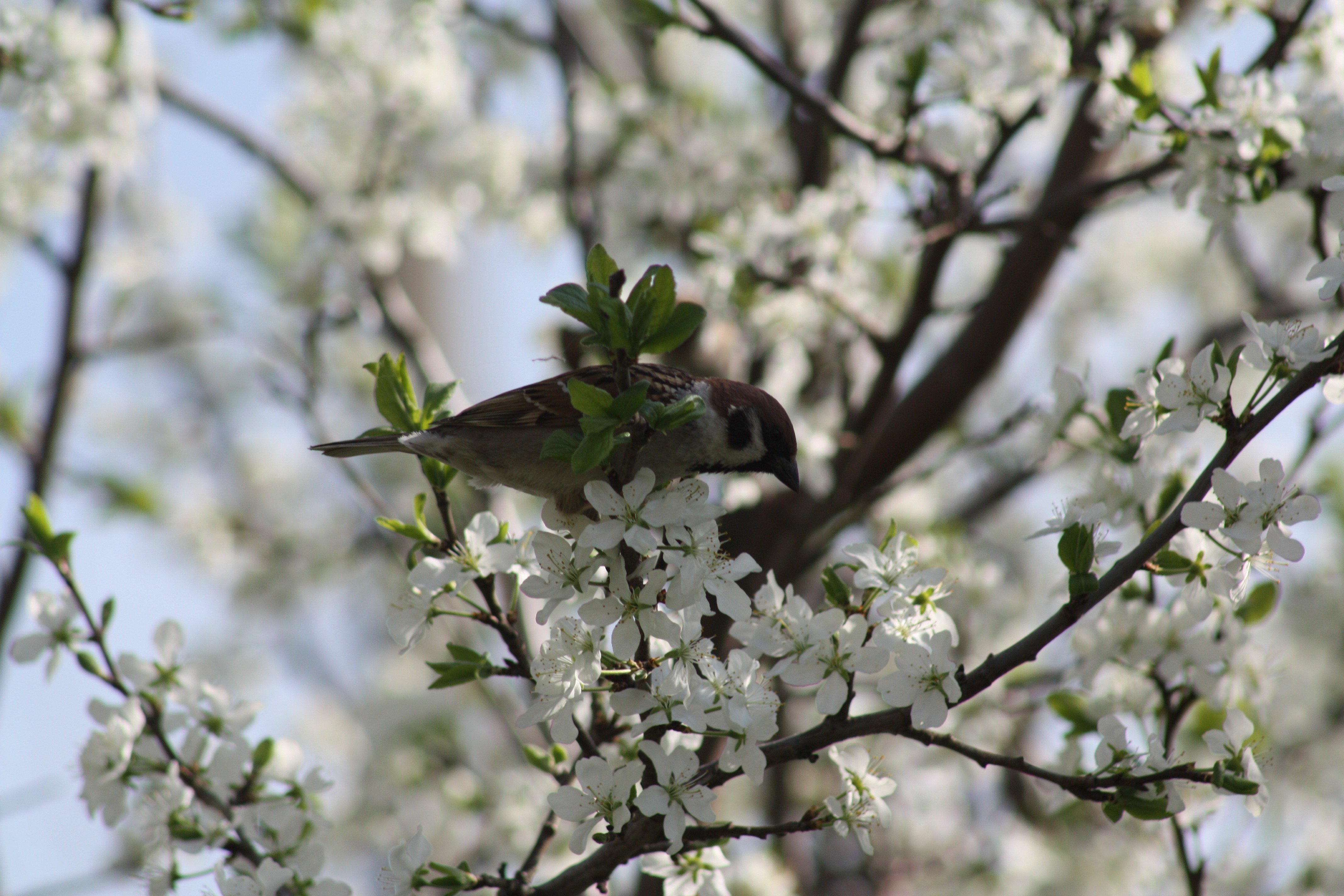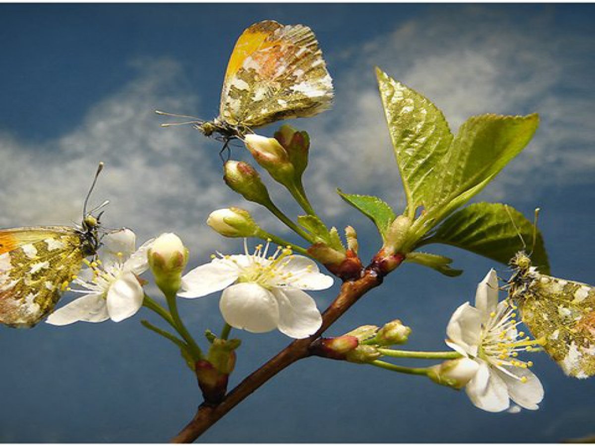 Птица на цветущей ветке