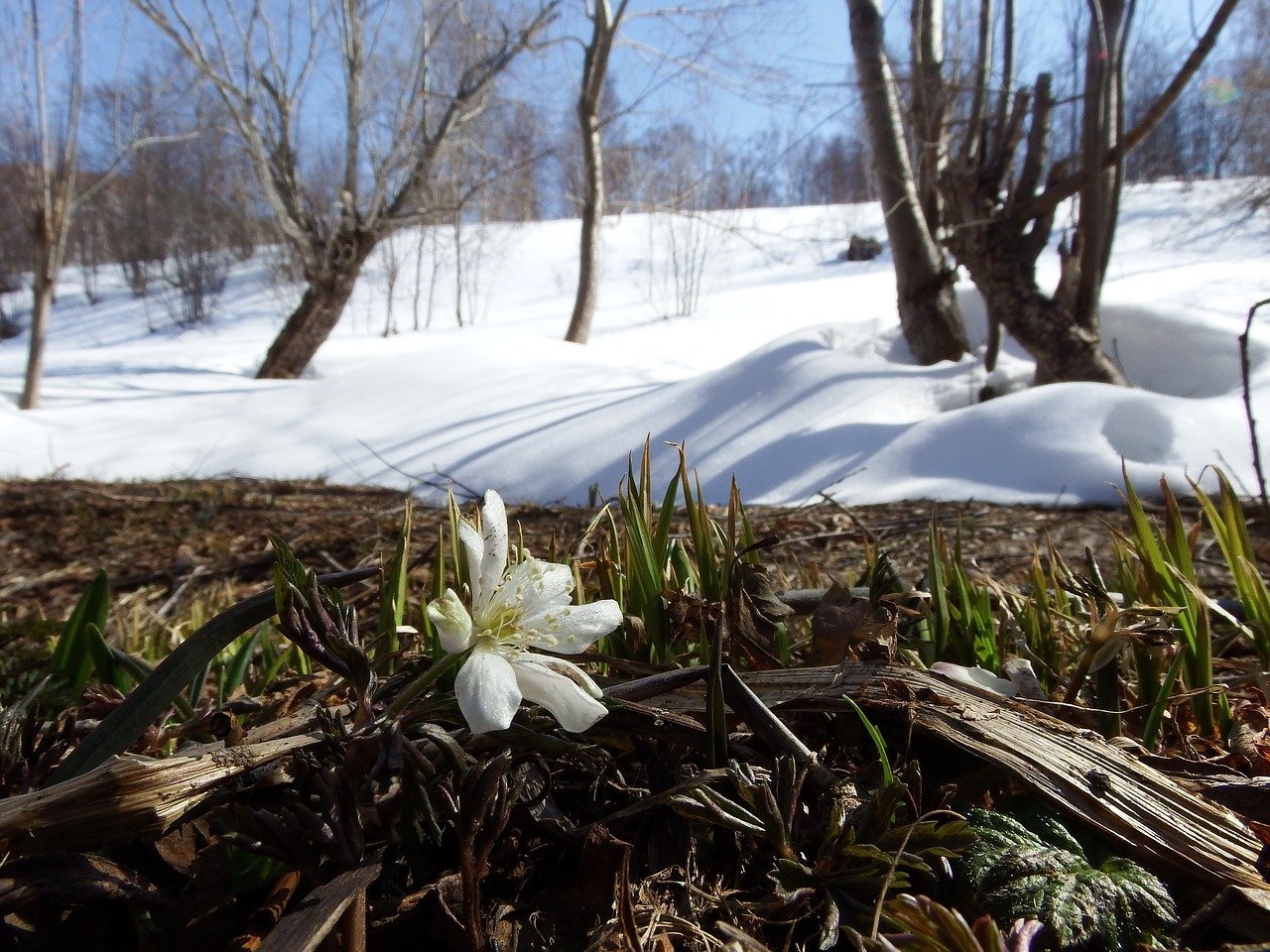 Ранняя Весна с проталинами подснежниками