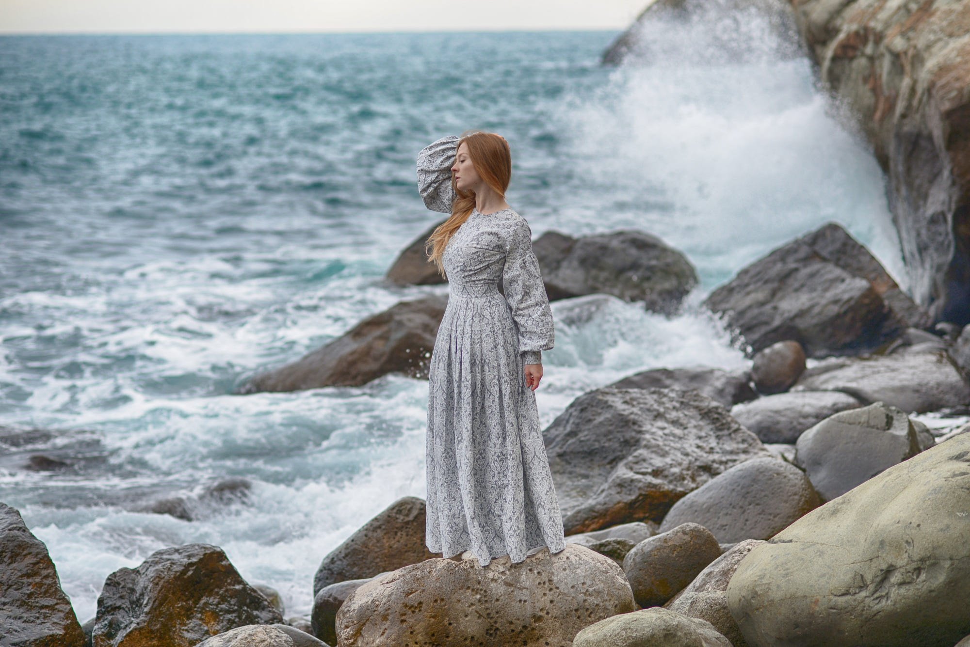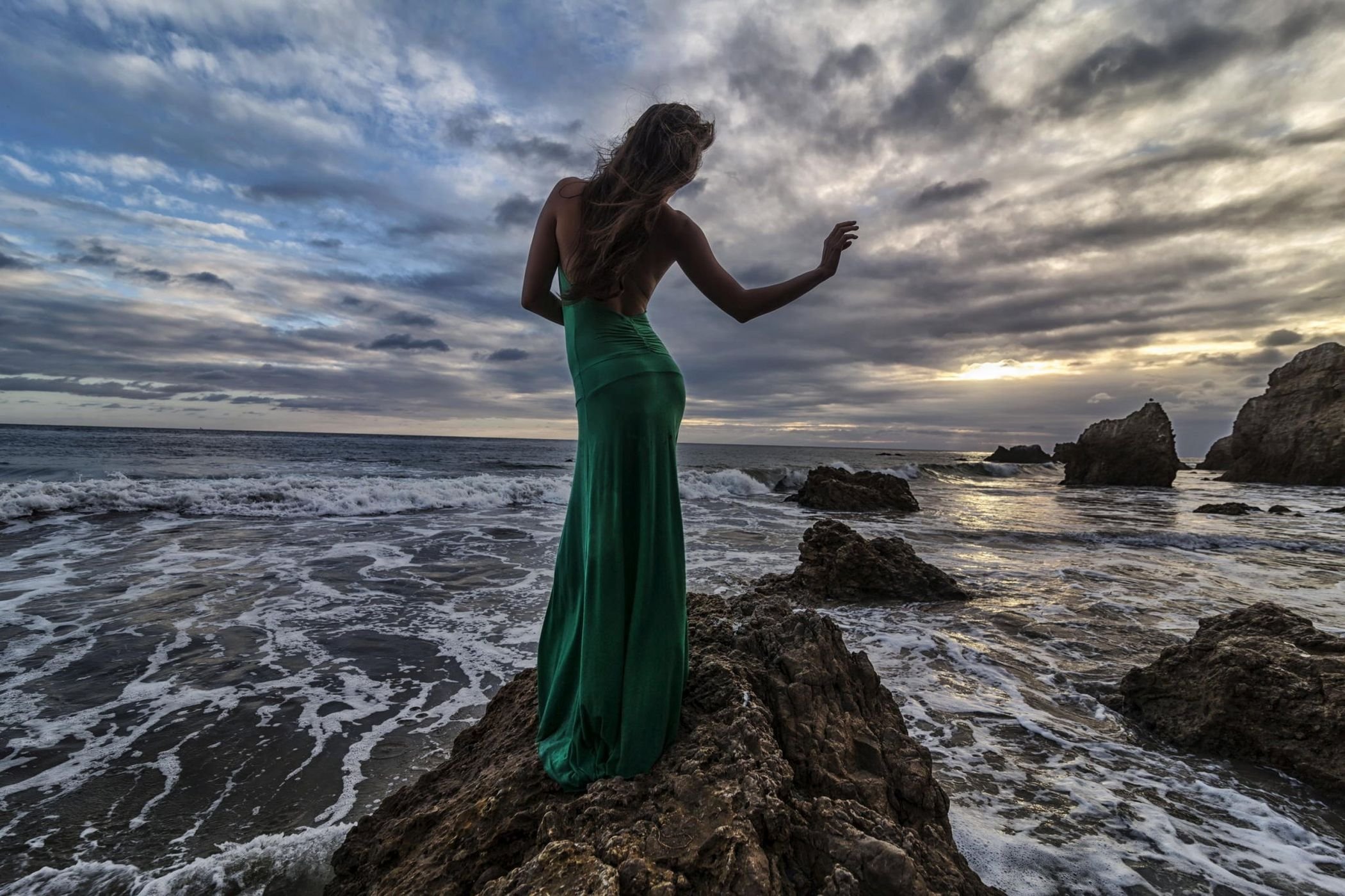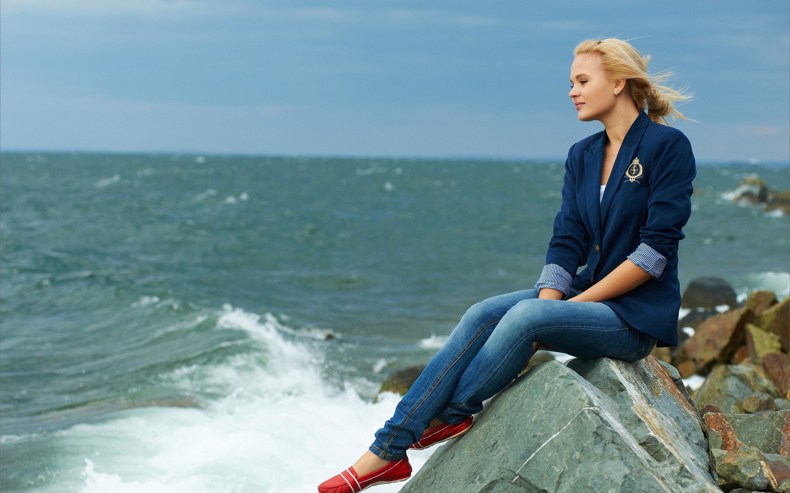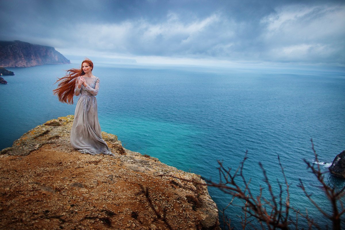 Девушка на скале у моря