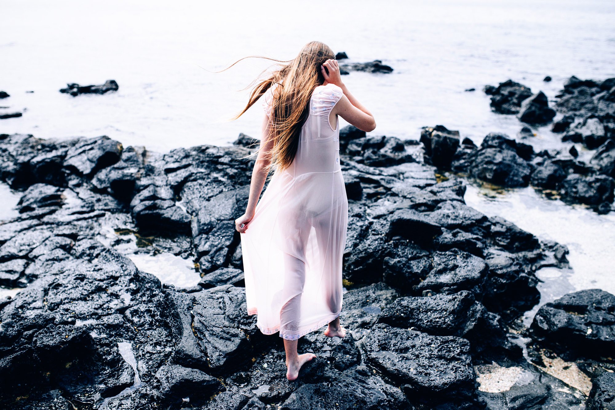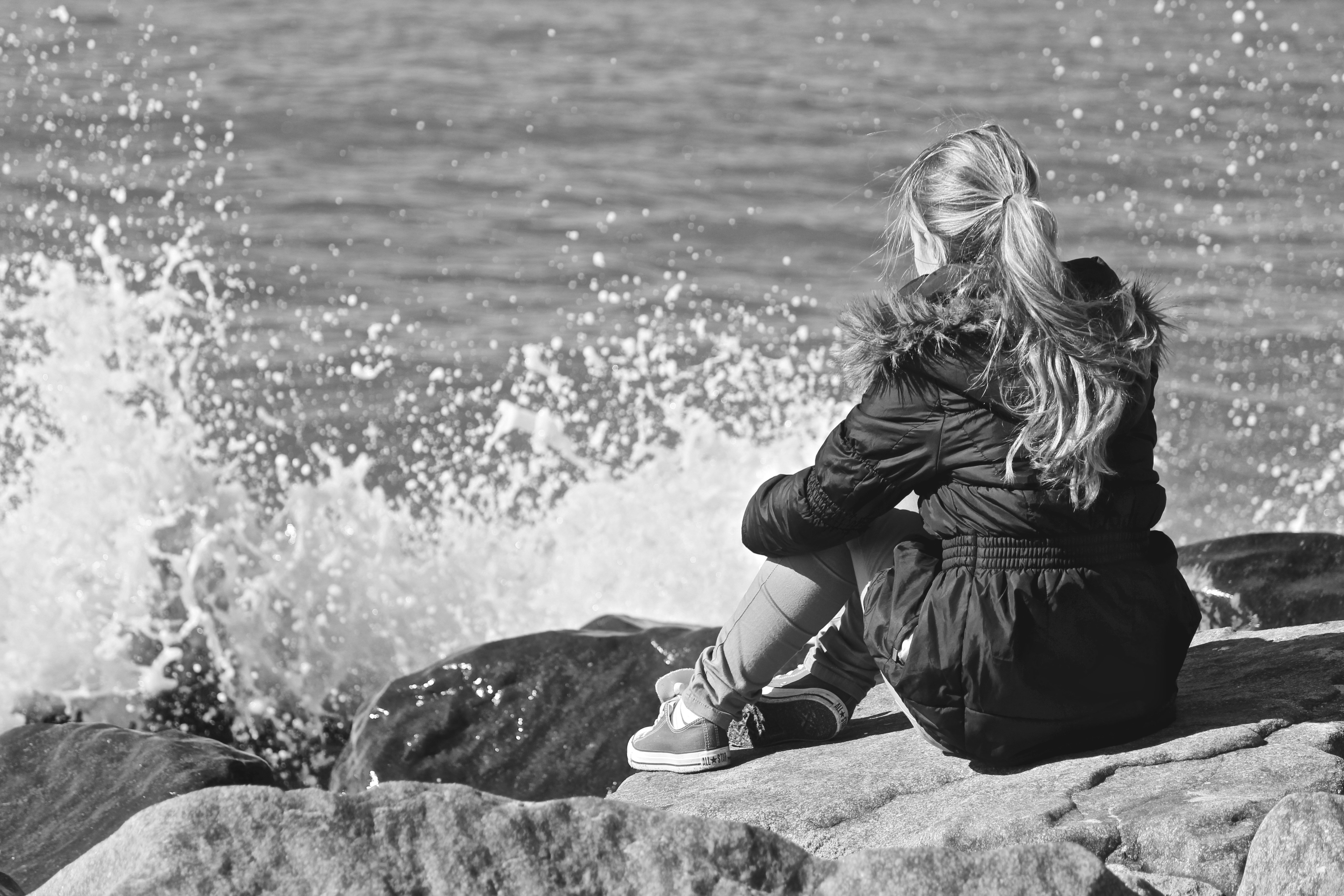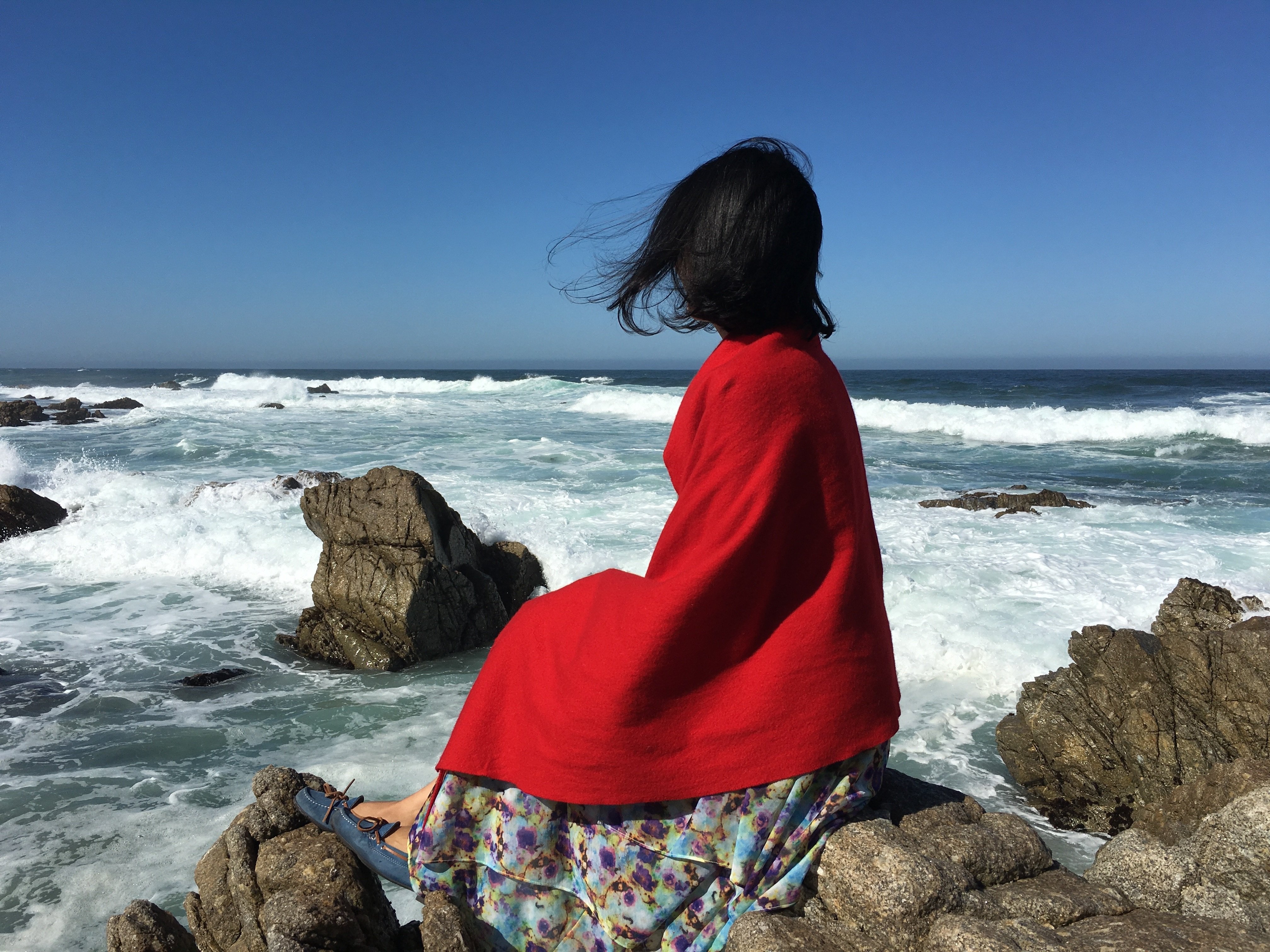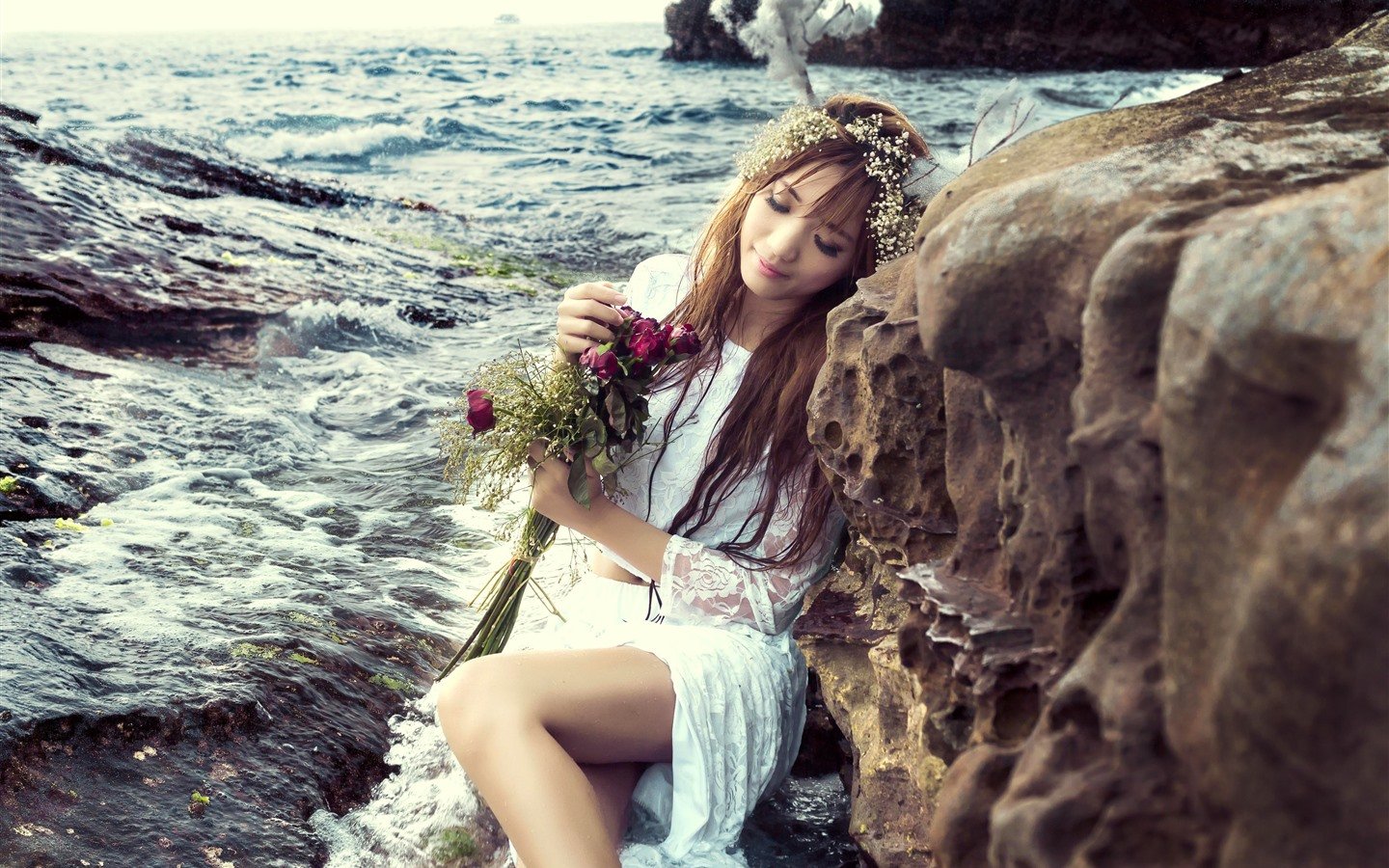 Девушка на скале у моря
