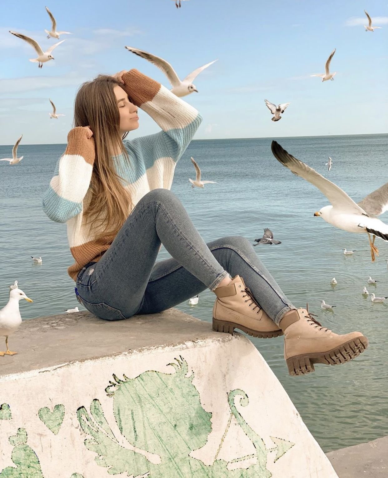 Девушка море Чайки