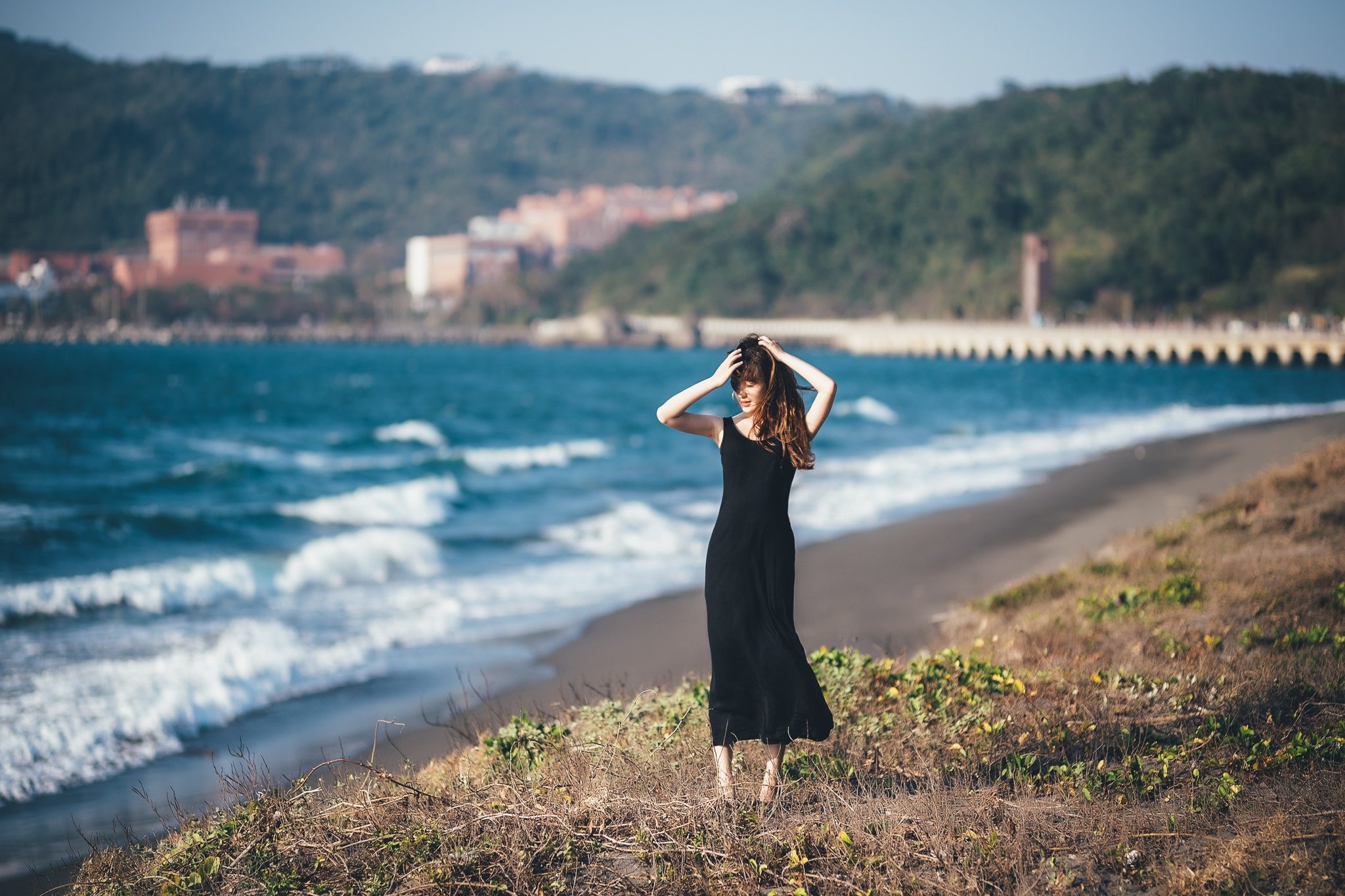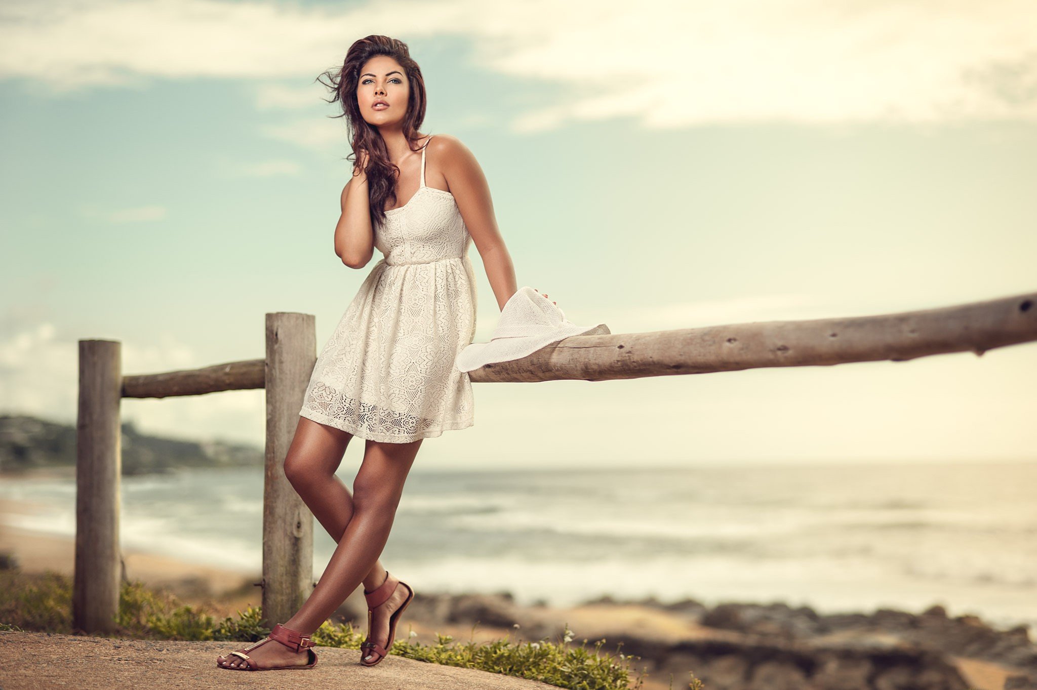 Позы на море в платье