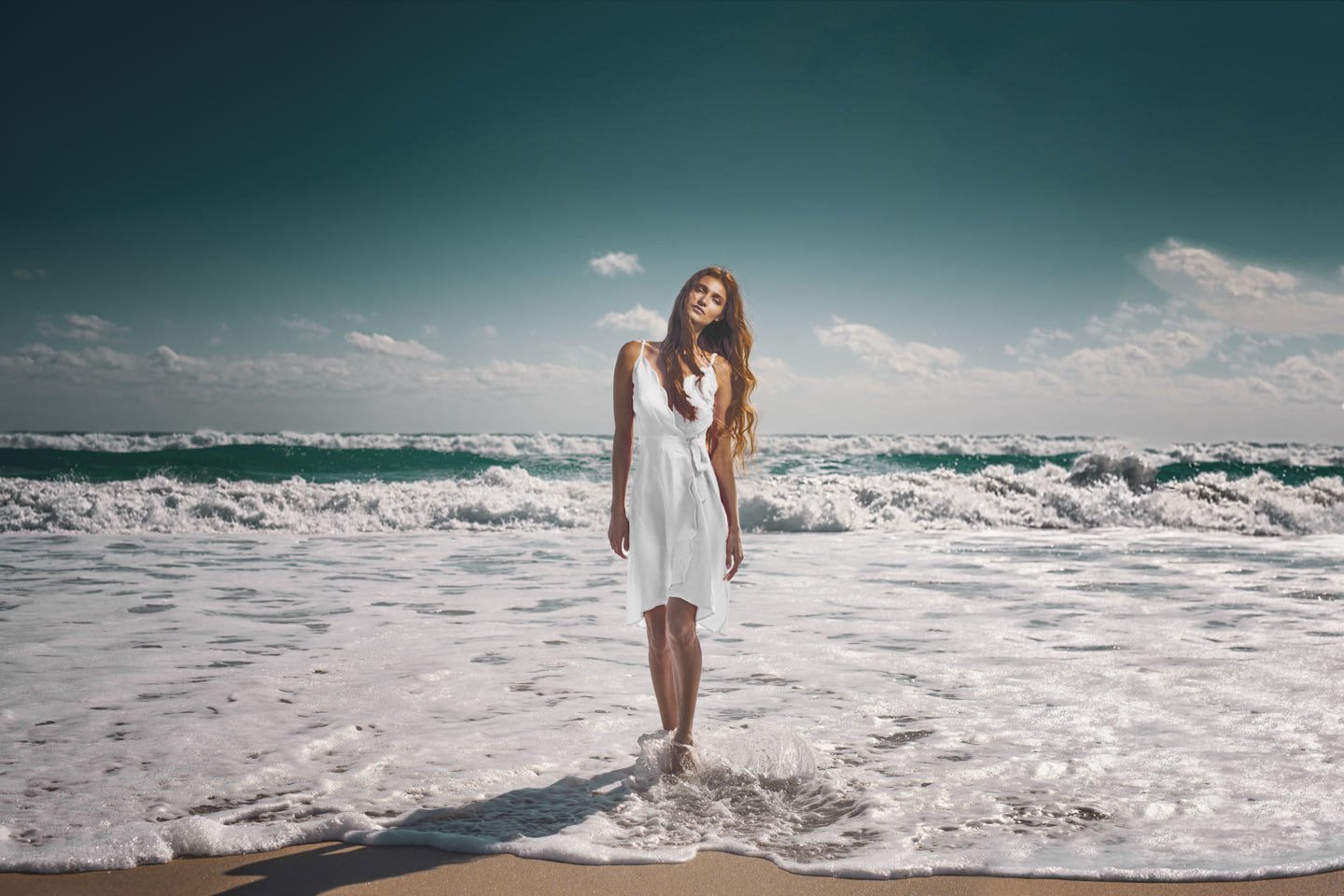 Девушка в платье на море