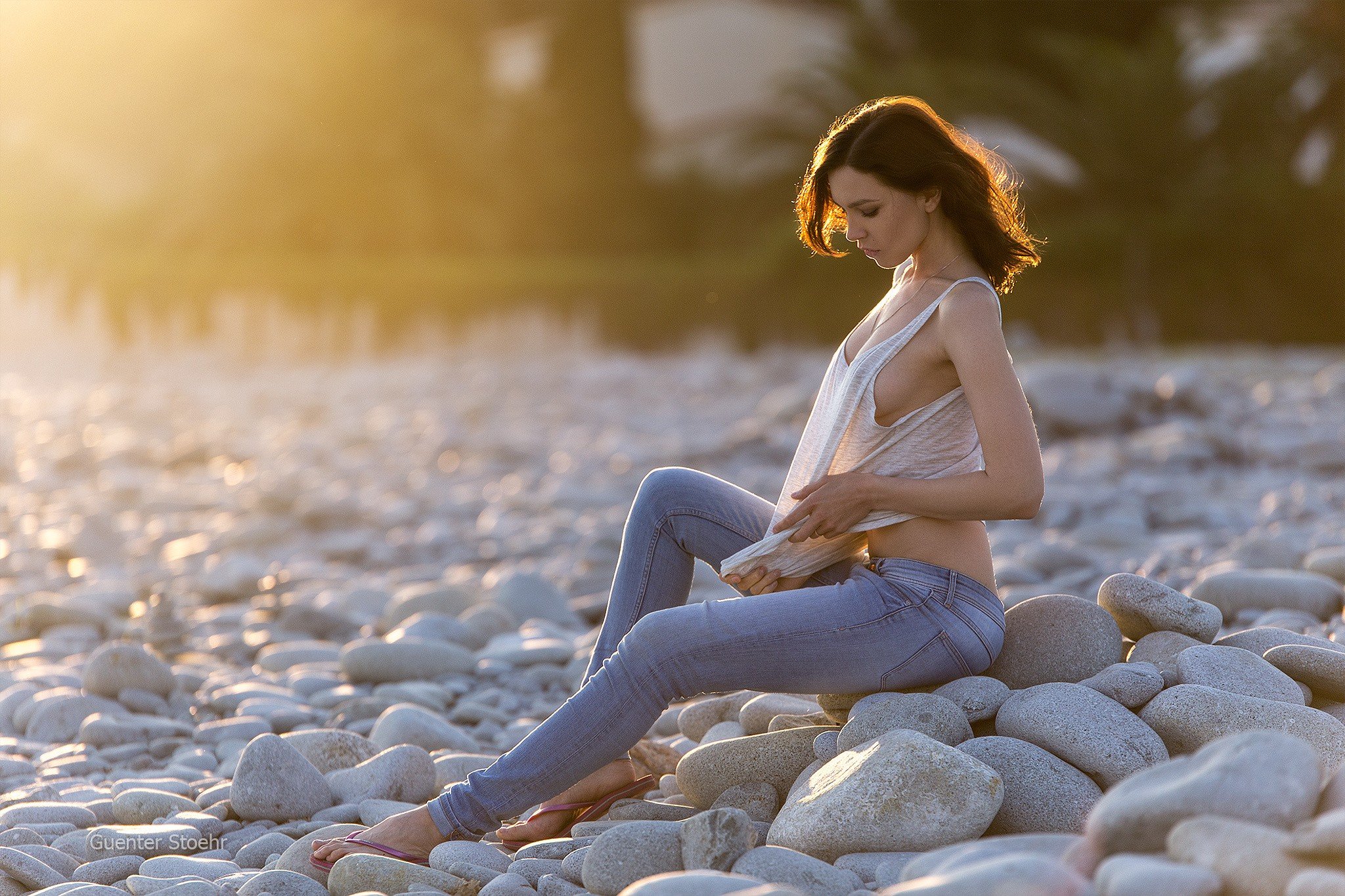 Фотосессия возле воды в купальнике