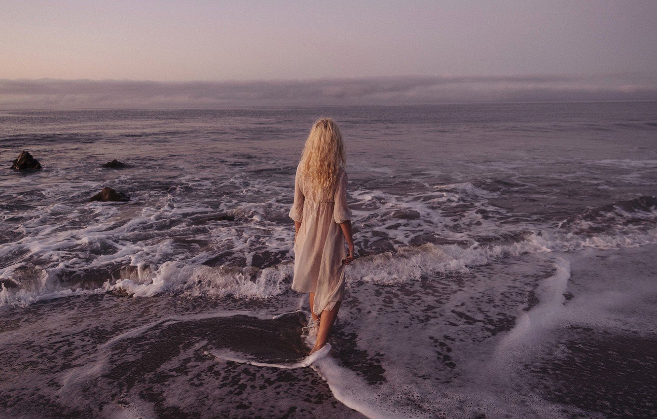 Девушка идет по берегу