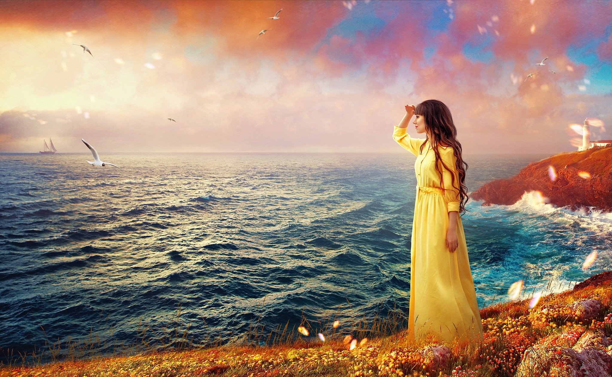 Морской рассвет с девушкой