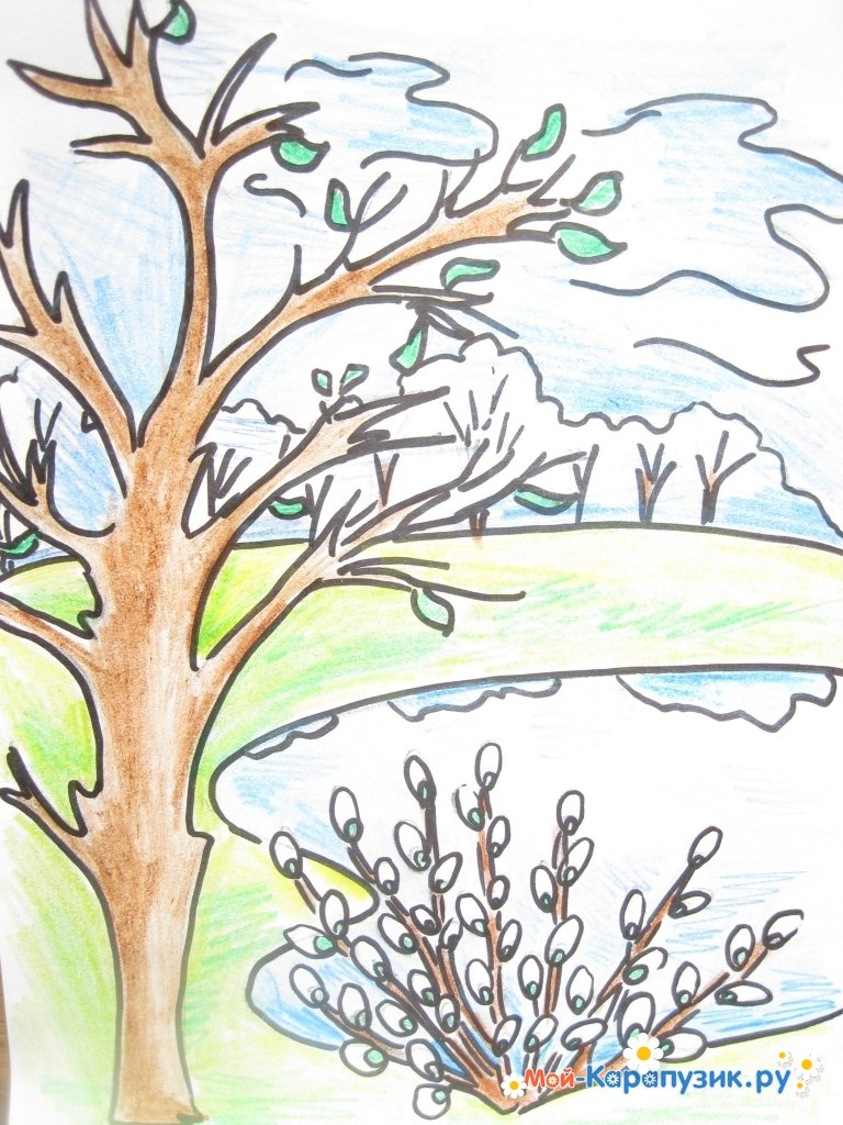 ![Ранняя Весна рисунок легкий]()