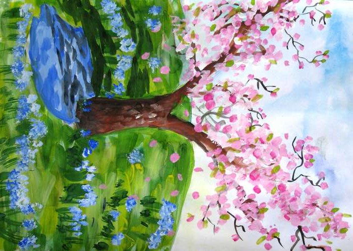 Весенний пейзаж гуашью
