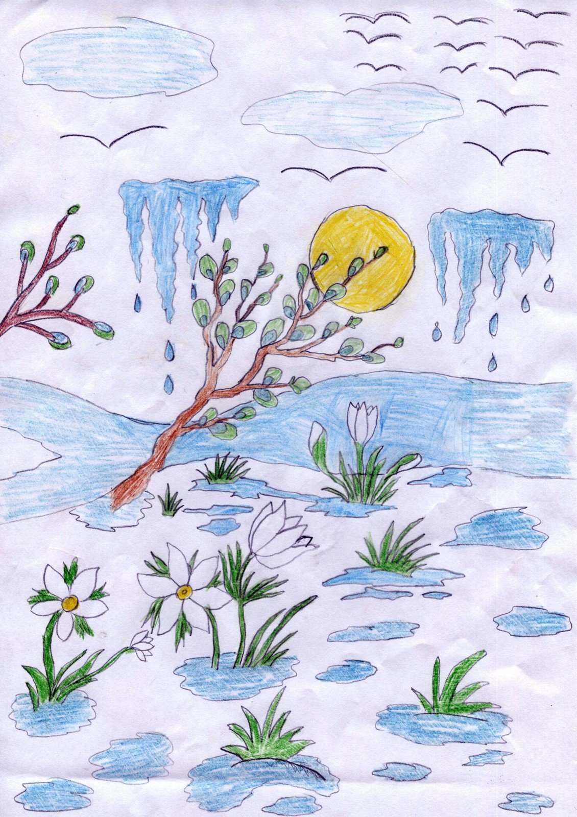 Весна детский карандаш