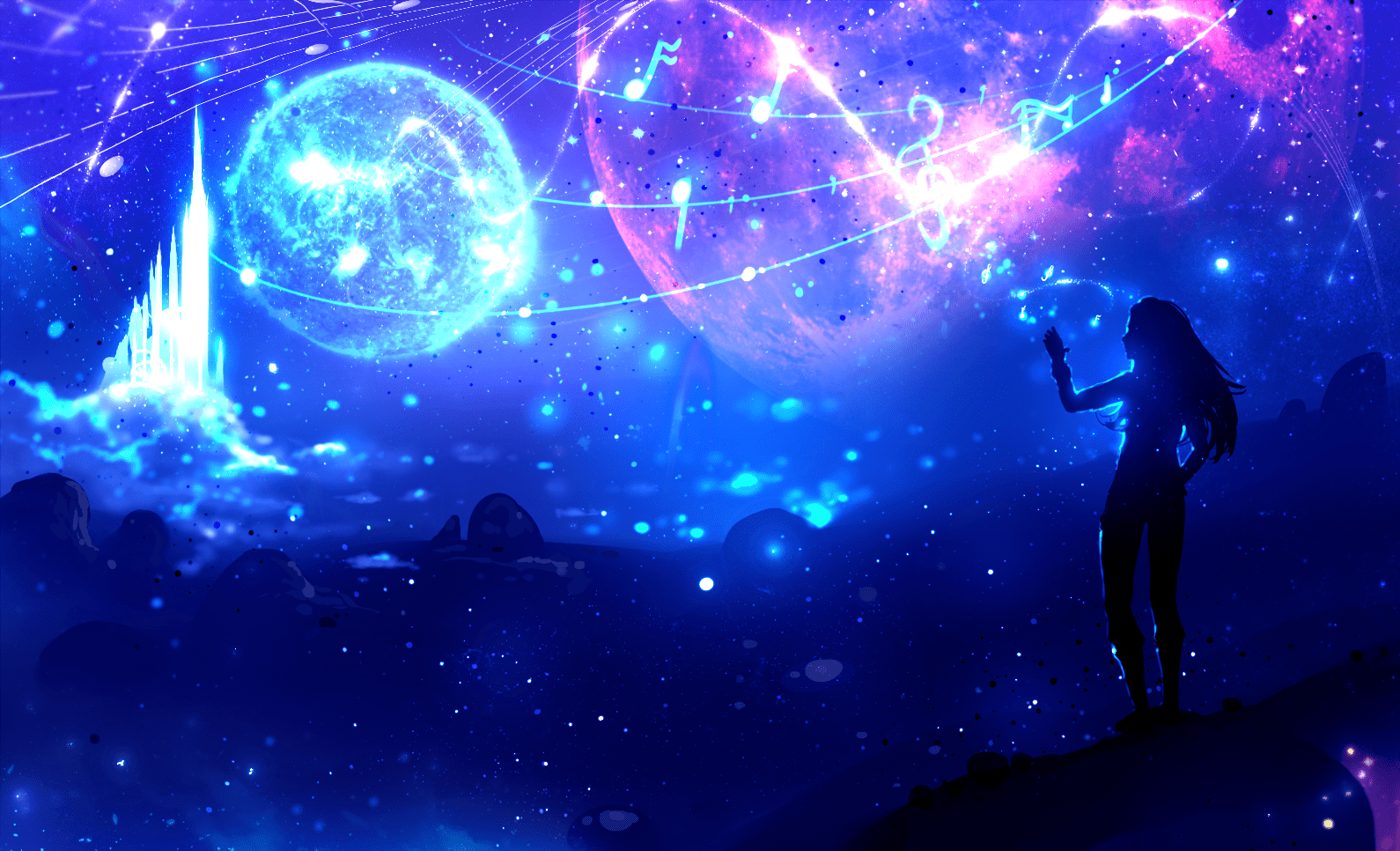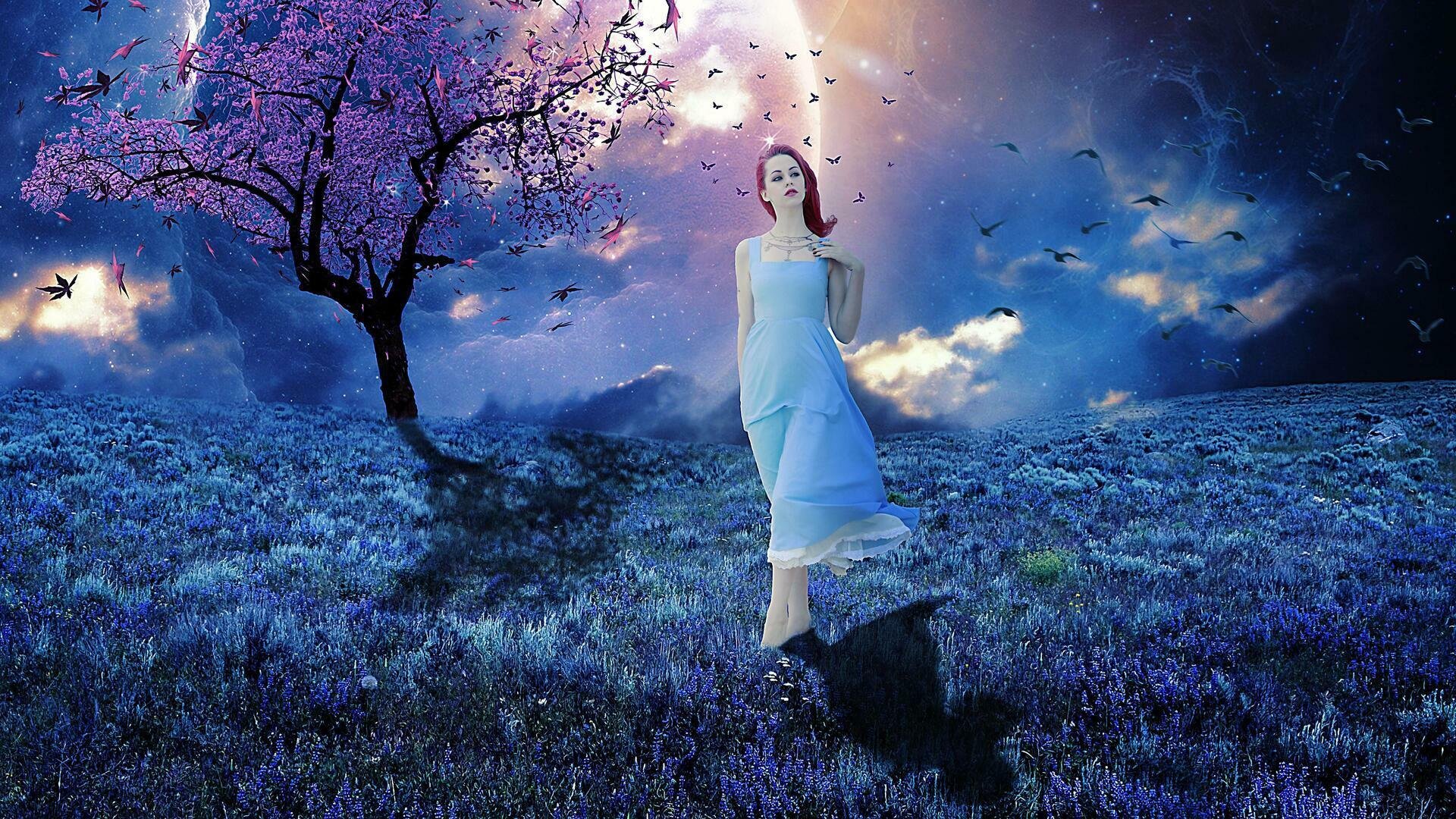 Девушка на фоне звездного неба