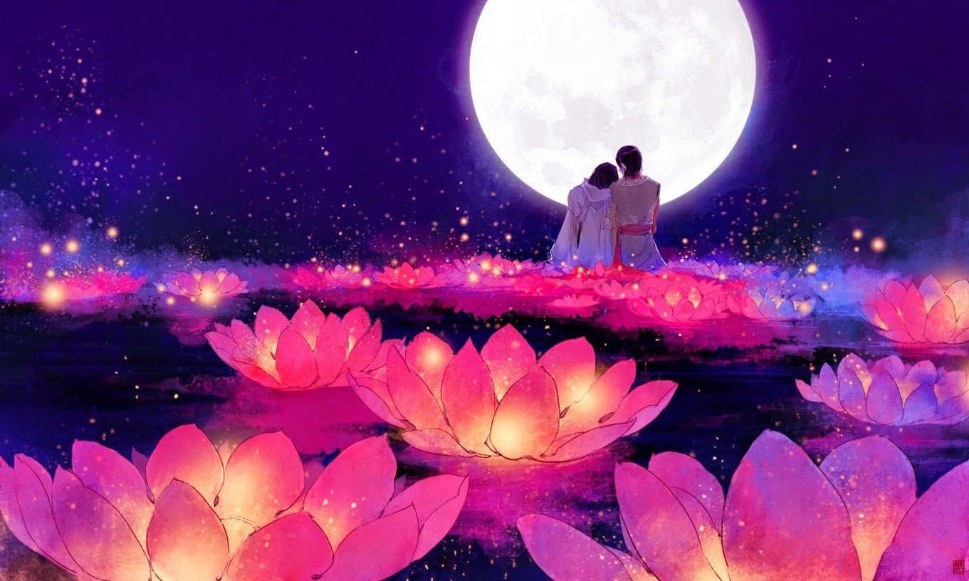 Луна и цветы