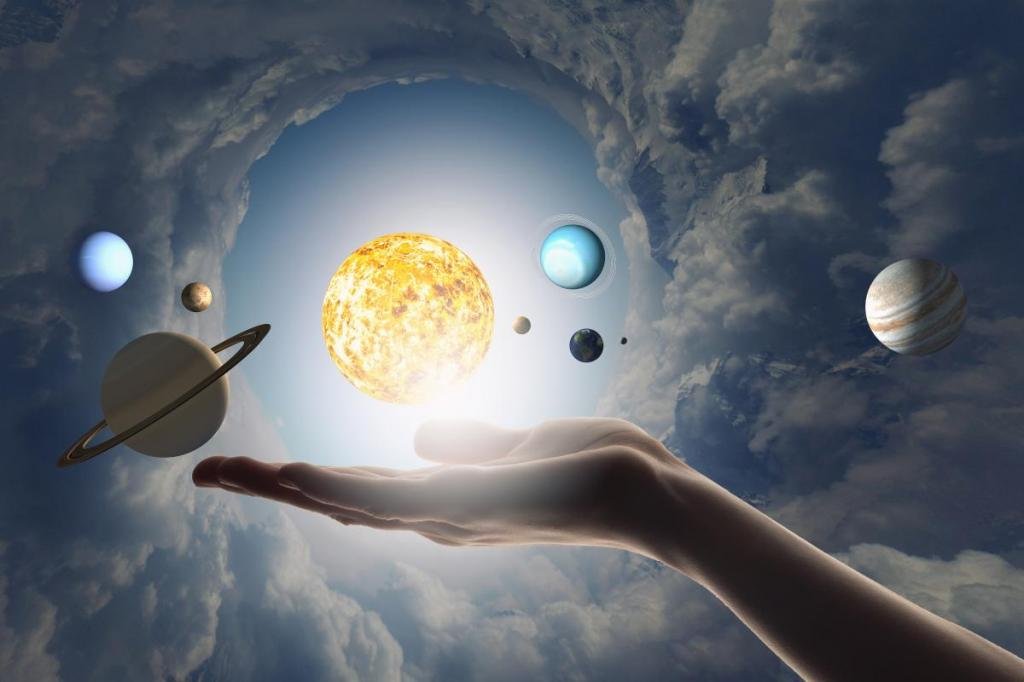 Девушка с планетами на природе