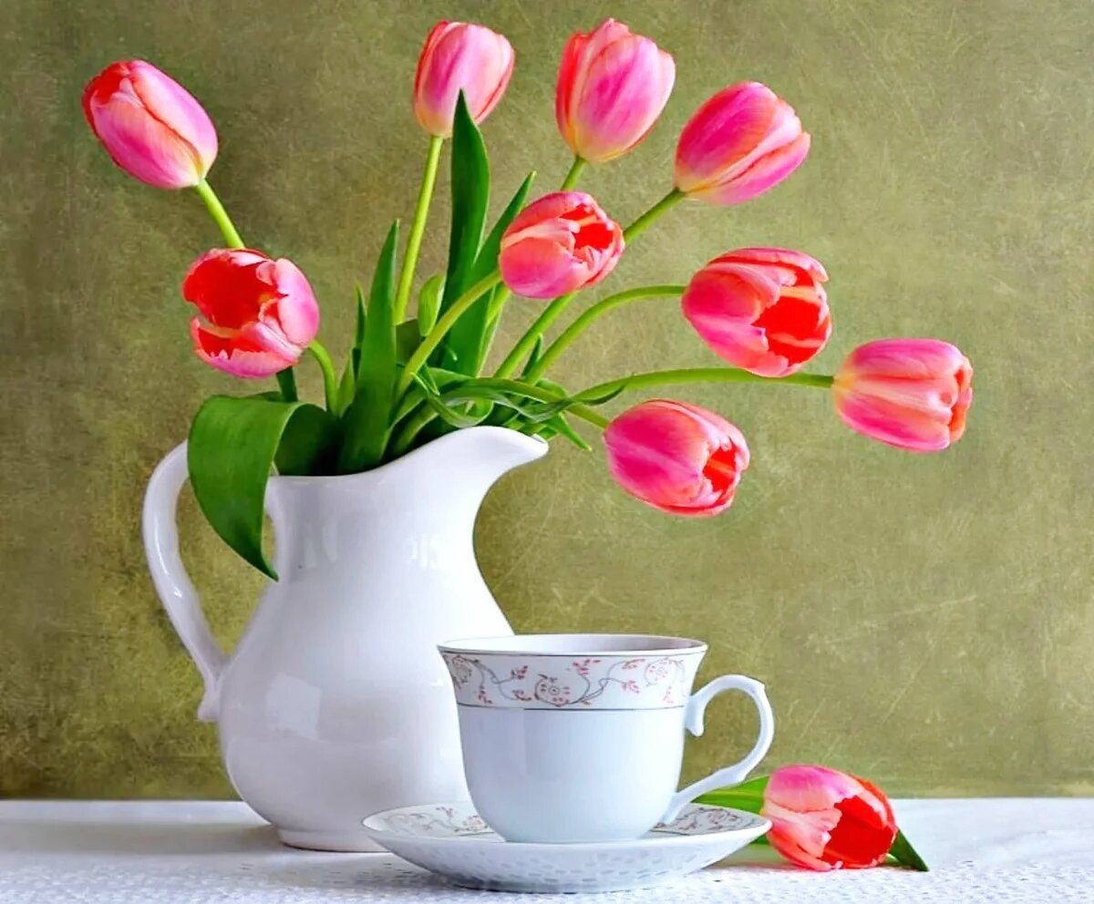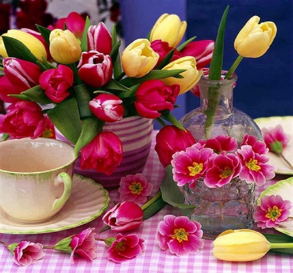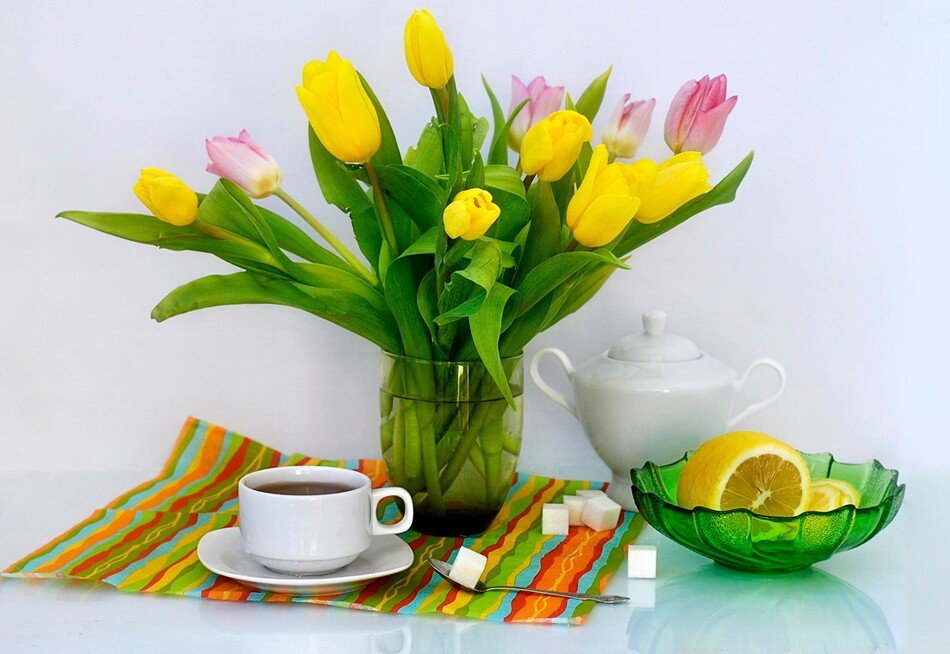 Весенние тюльпаны и чай