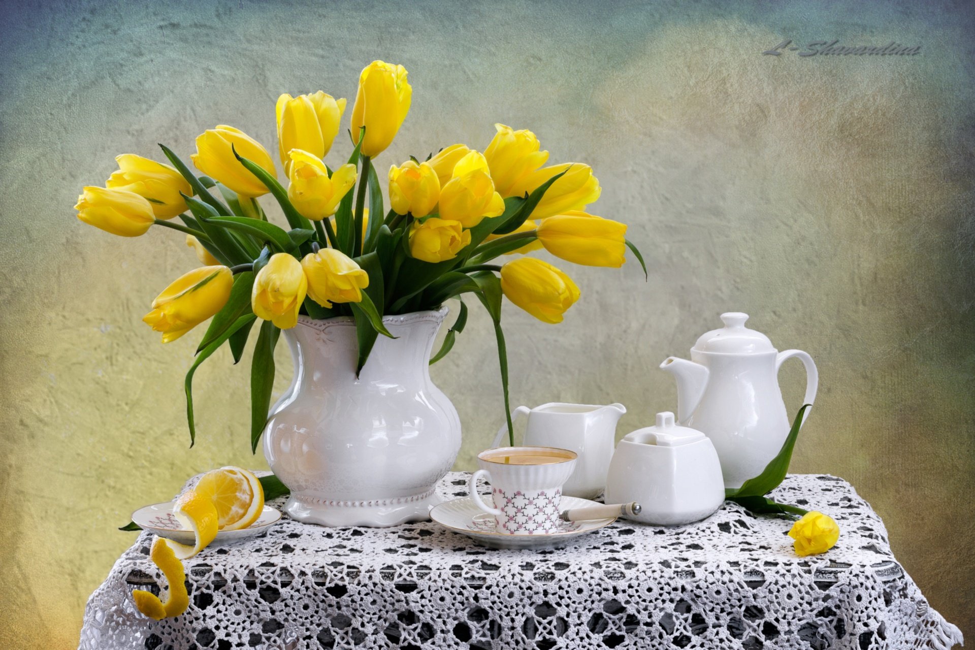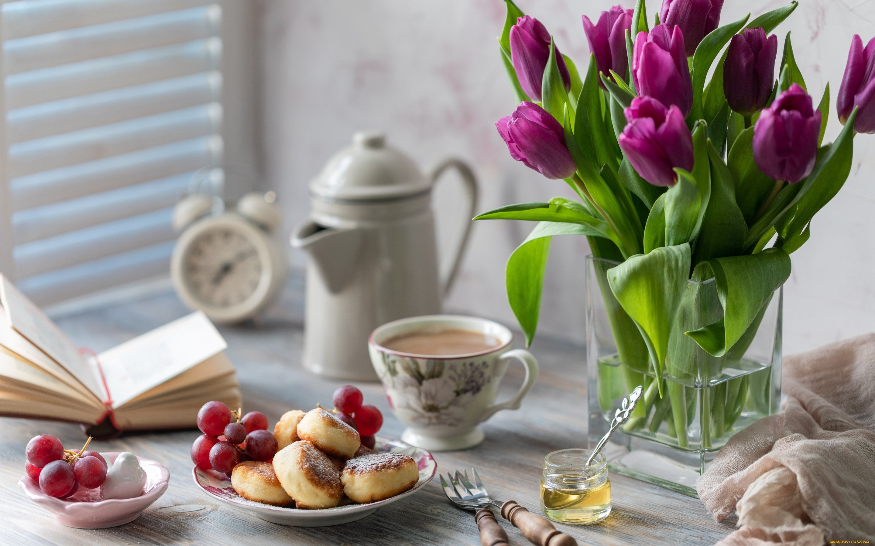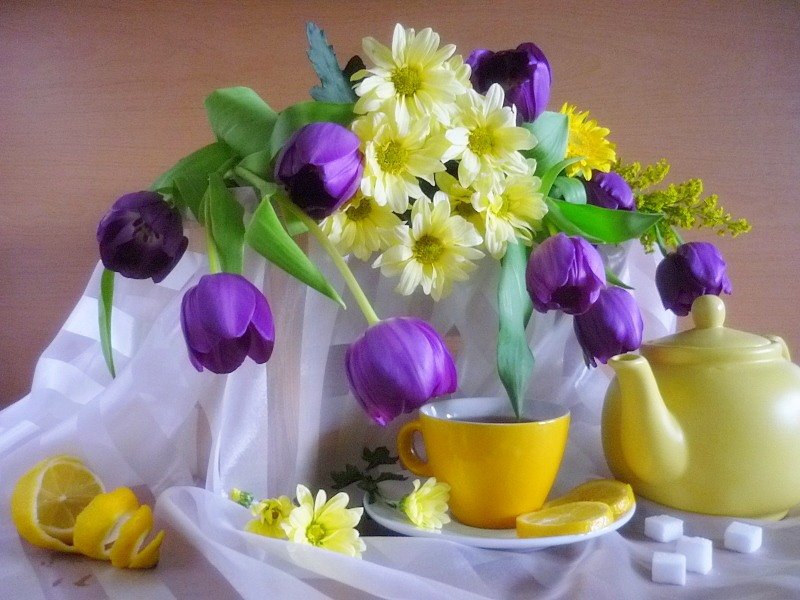 ![Тюльпаны и чай]()