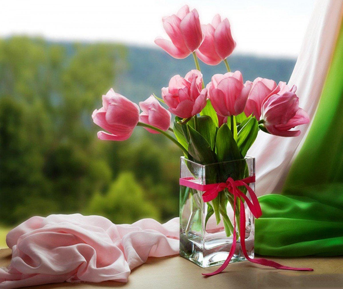 Доброе утро и букет тульпан