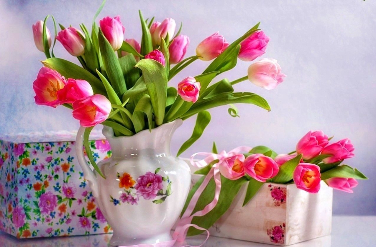 ![Натюрморт тюльпаны в вазе]()