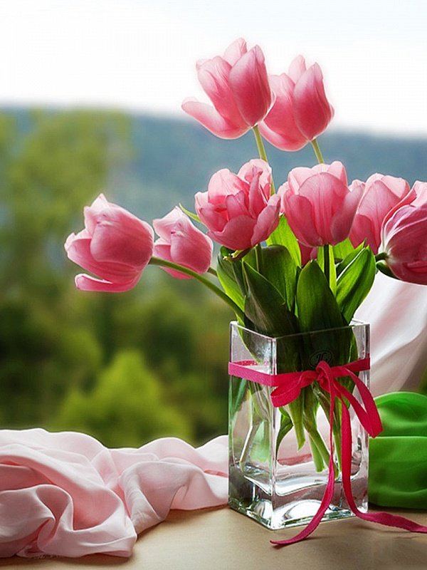![Букет тюльпанов в вазе доброе утро]()