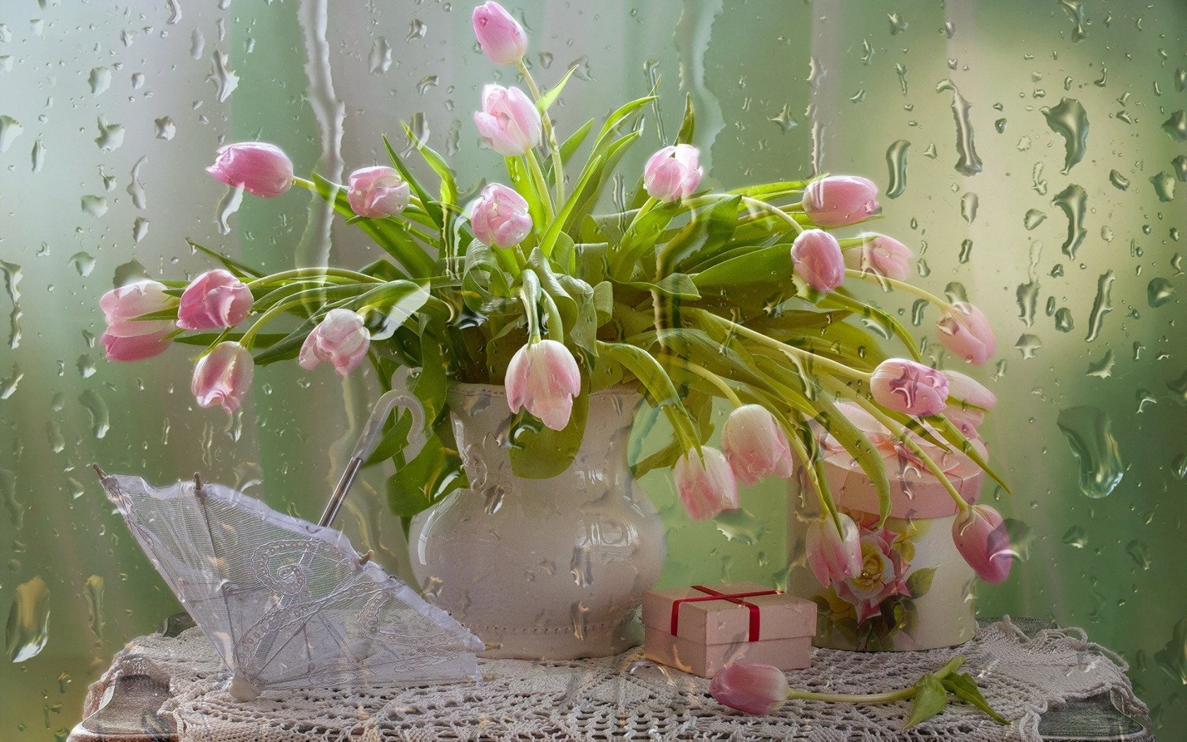 ![Розовые тюльпаны в вазе]()