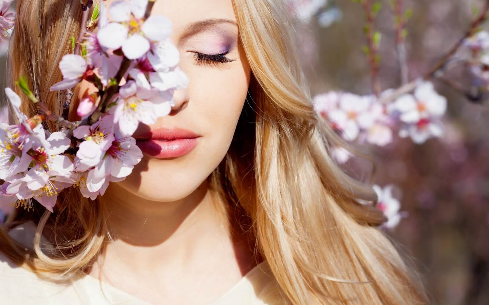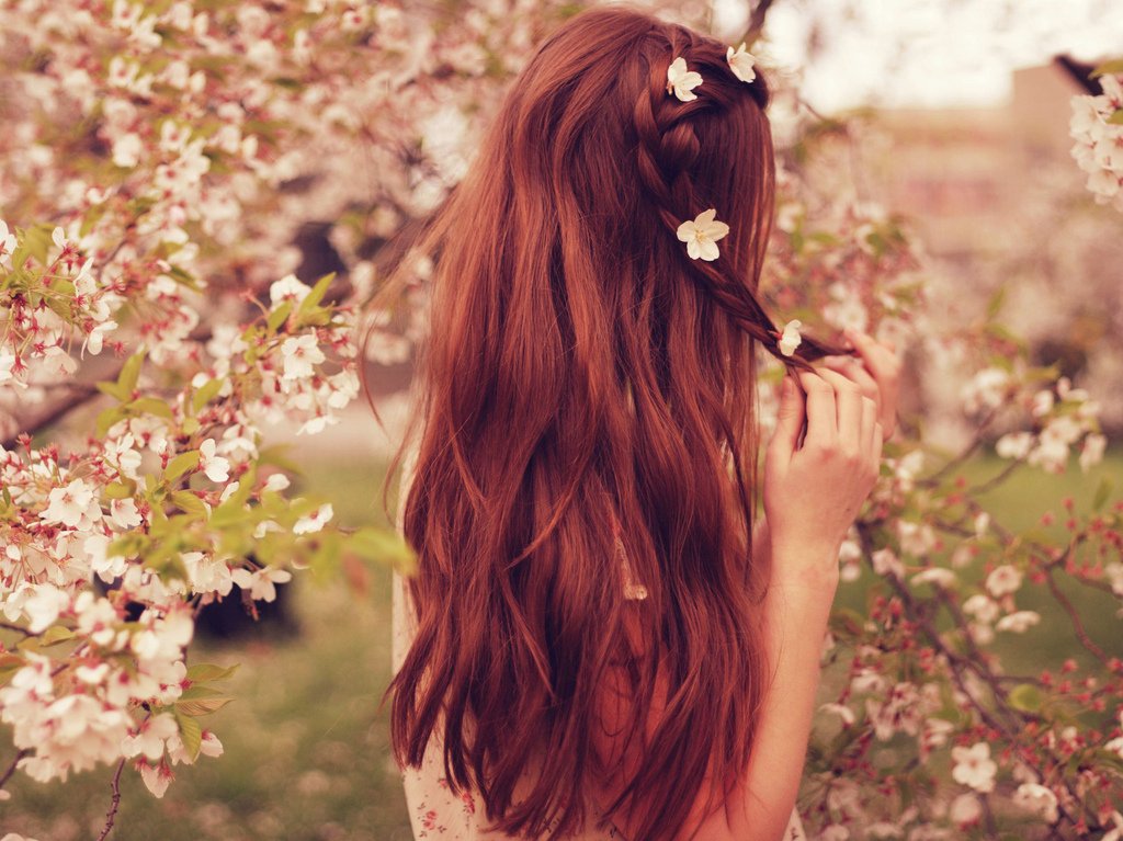 Девушка с длинными волосам весной