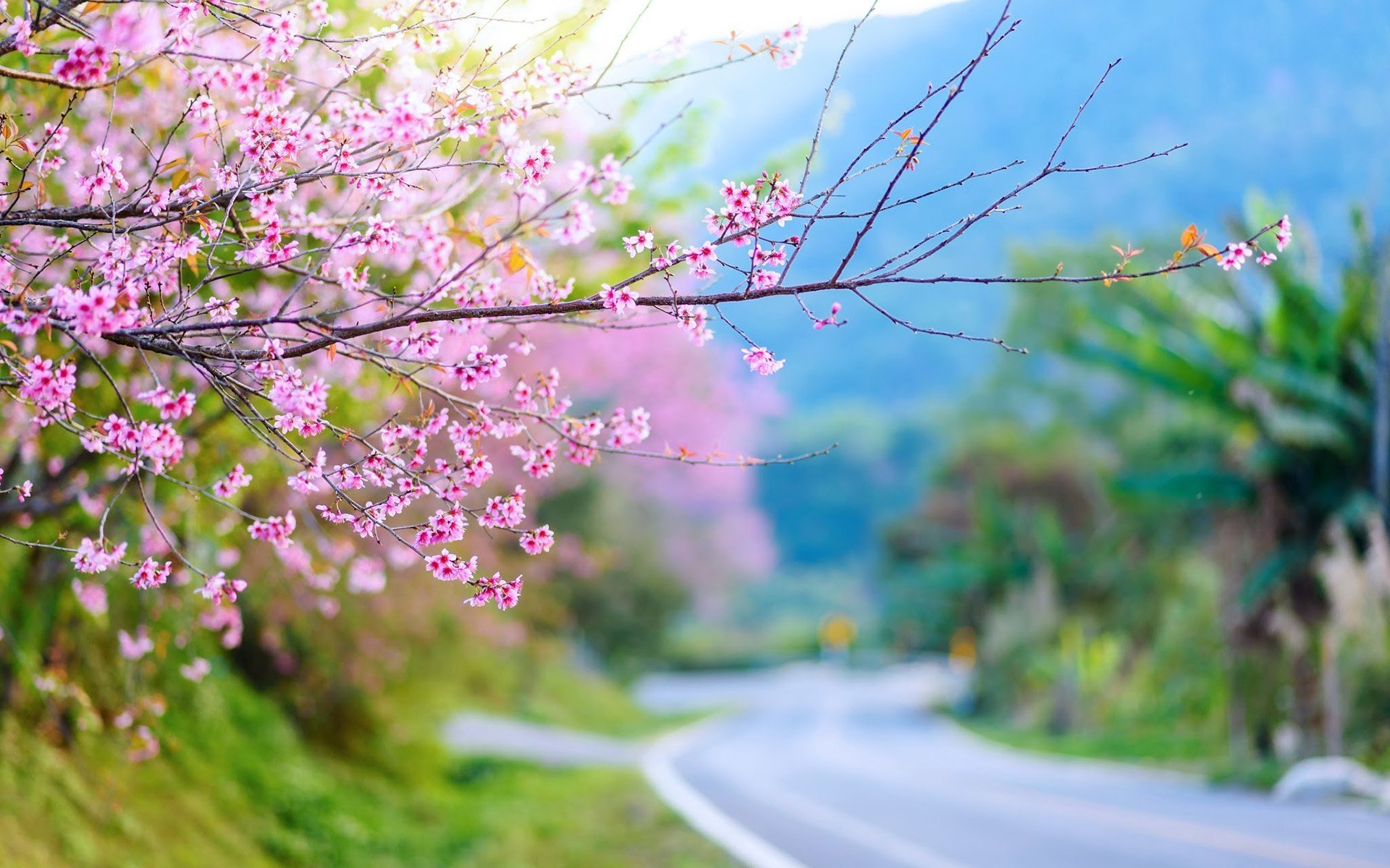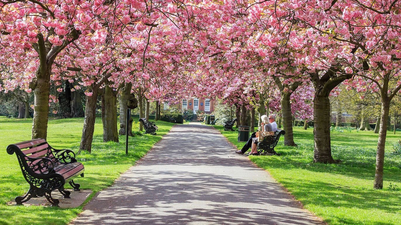 Фоны парк с розовыми деревьями