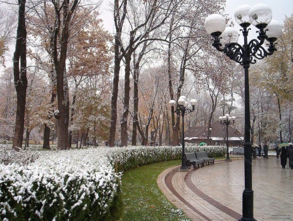 Первый снег в городском парке