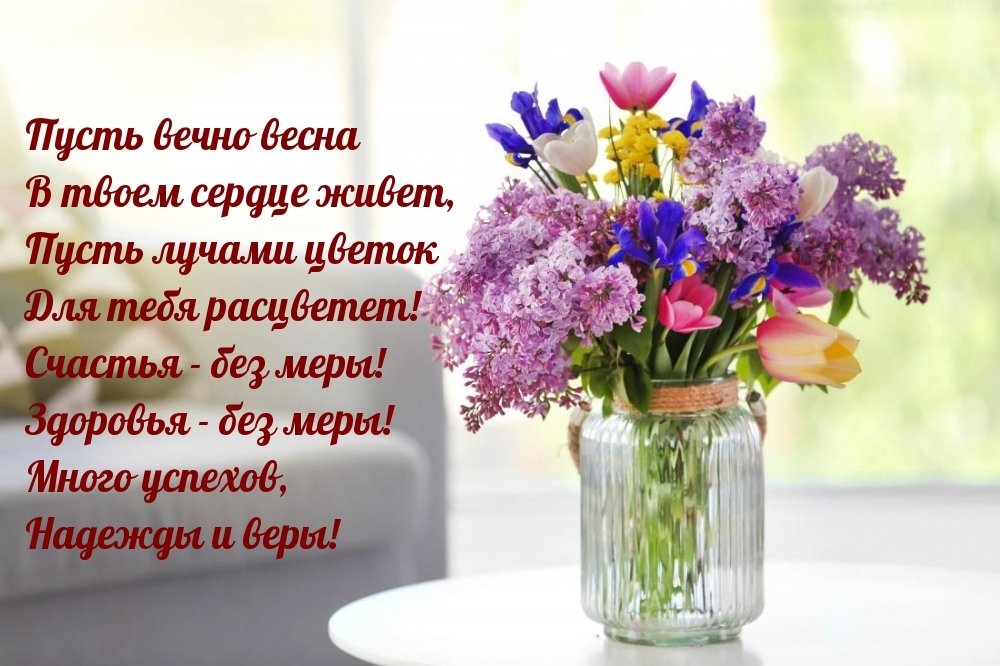 Весенние цветы с пожеланиями