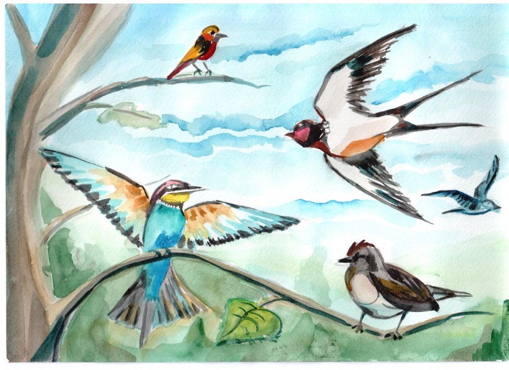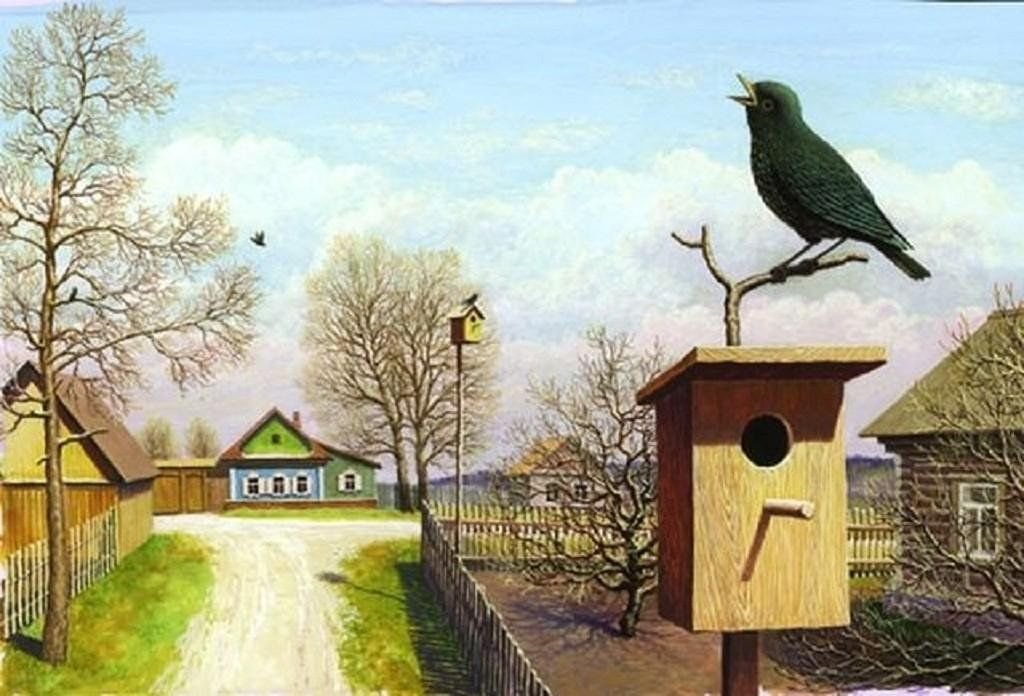 ![Картина птицы весной]()