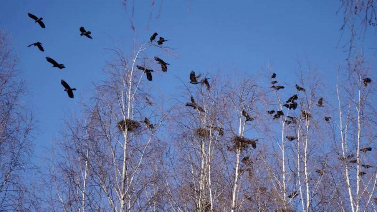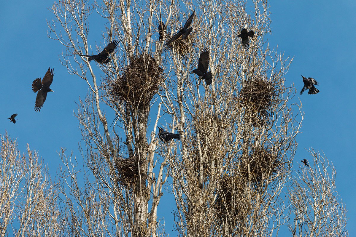 ![Грачиные гнезда на деревьях]()