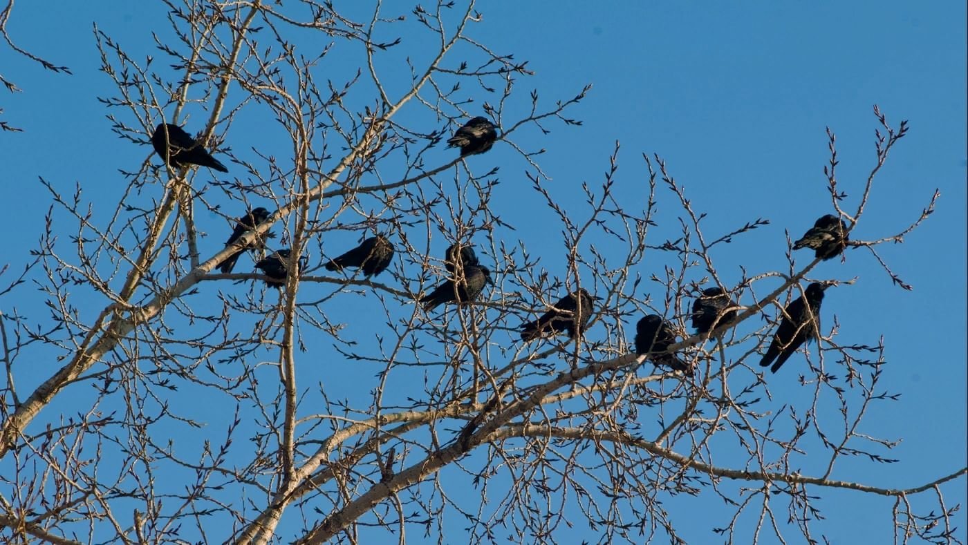 ![Вороны на верхушке дерева]()