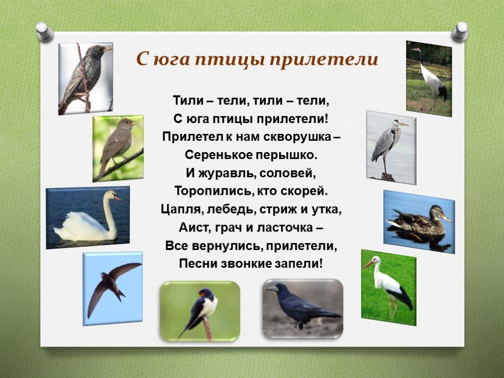 Перелётные птицы весной для дошкольников