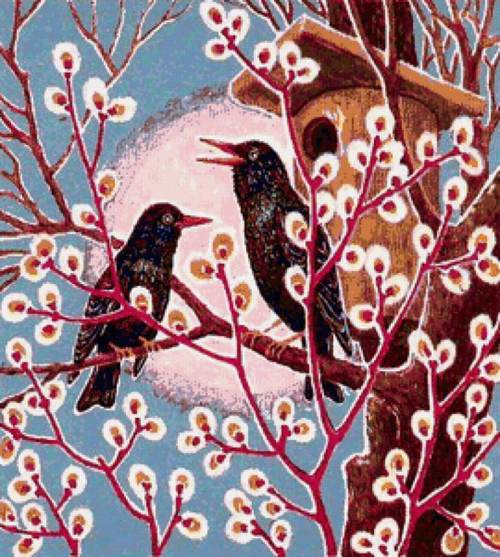 Картина птицы весной