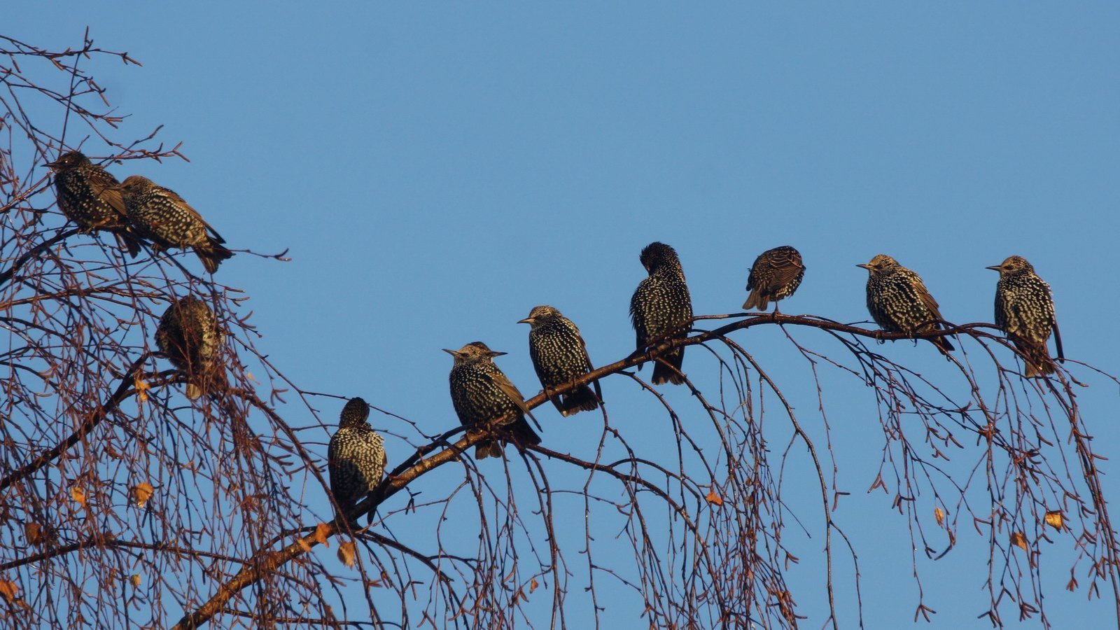Стая перелетных птиц скворцы